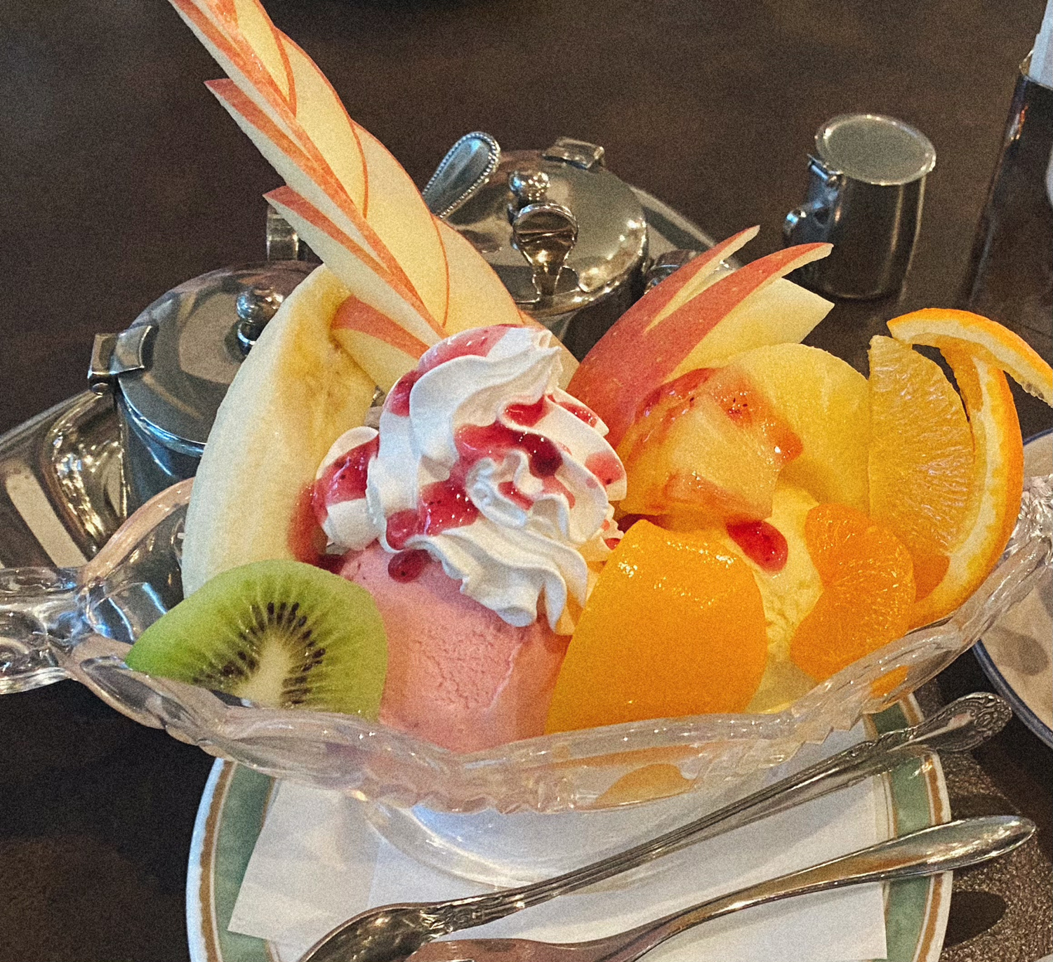 美しい盛り付けに感動するとともに、うさちゃんリンゴを見るといつもこの形にリンゴを切ってくれていた母のことを思い出す。ややノスタルジックな気持ちに。ミルクボーイさんのネタで印象的なかさ増しのコーンフレーク(やスポンジ)は入っておらず、アイスクリーム + フルーツのシンプルな構成で、後味がすごく爽やか。パフェを食べると口の中に複雑な感触が残ることが多いが(パサパサ、カサカサするけど、めっちゃ甘い、みたいな)、フルーツの瑞々しさだけが残ってパフェを食べた罪悪感も少ない(= 女の子の味方のようであり1番の敵)。いつでも思い出せるようにここに記しておきます。