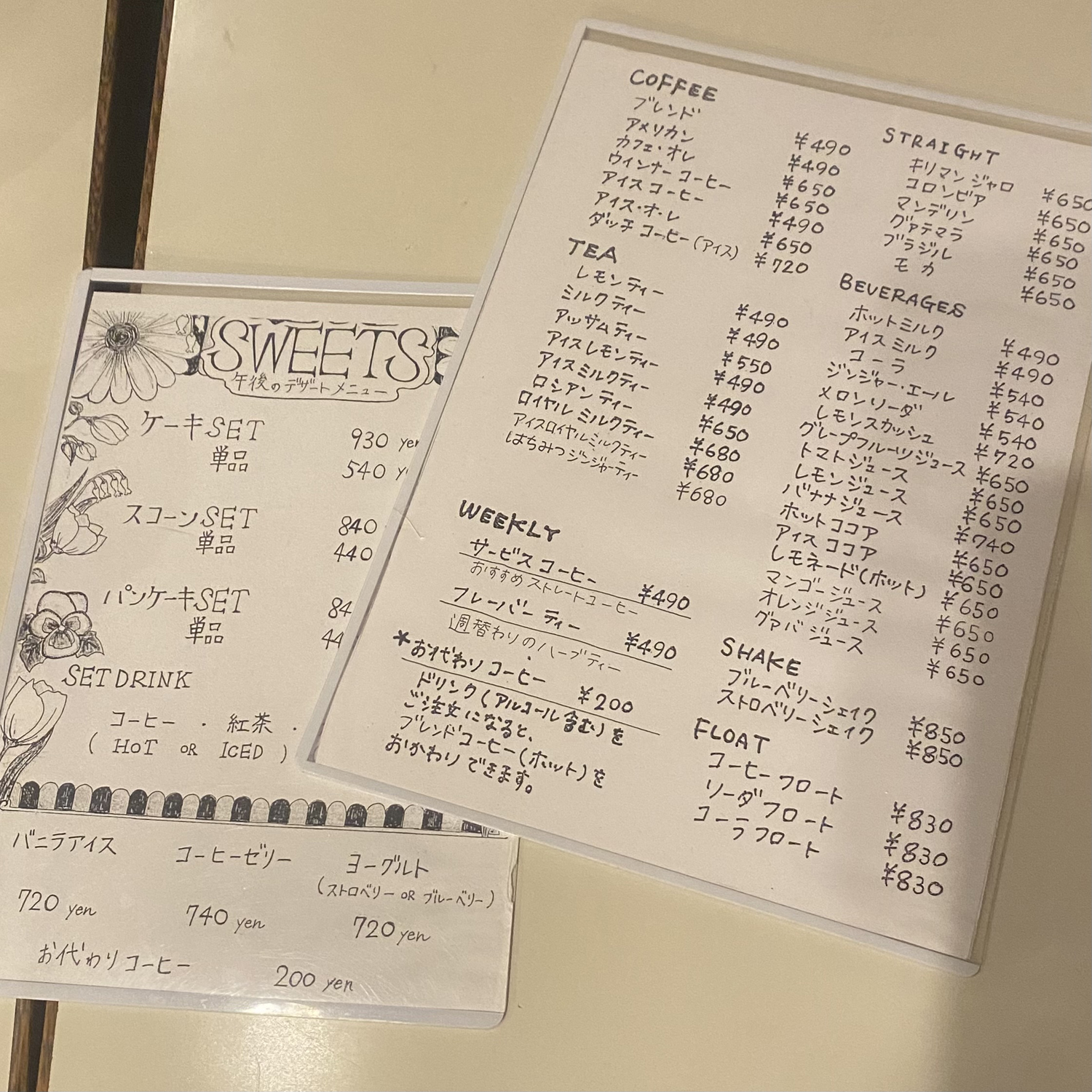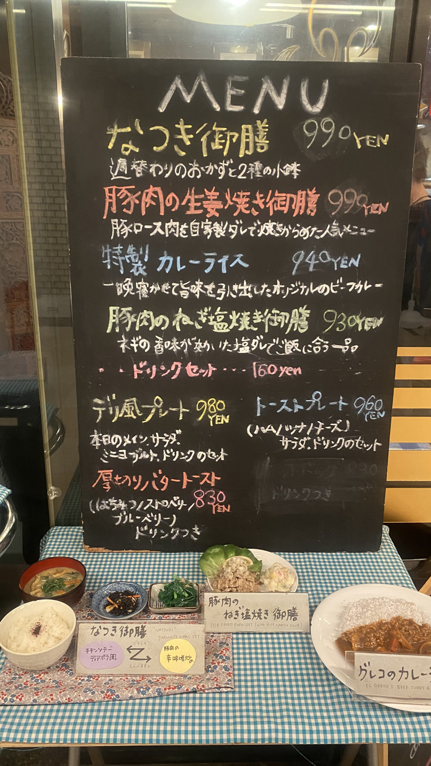 手書きのメニュー表がかわいくてテンションが上がる。昔、ライヴ・スケジュールを毎月ポスカで画用紙に書いて、Twitterにアップしていた自分の過去を思い出した。私は絵を描くのが一番苦手で、つまりデザインなんかも苦手なのに、意地になって画用紙に毎月書き続けた。あの衝動は何だったのだろう、と今になって思う。