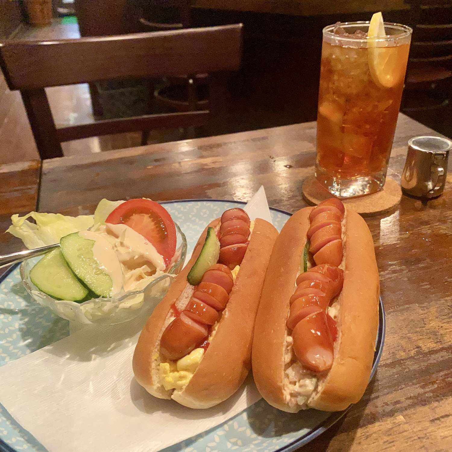 ただのホットドッグではない。左は卵、右はツナ……味変を勝手にしてくれているなんて!!! こんなの好きに決まってるやん、って声に出したくなるくらい質の良いTHE☆喫茶店のご飯で口元が緩んだ。とってもおいしかった。