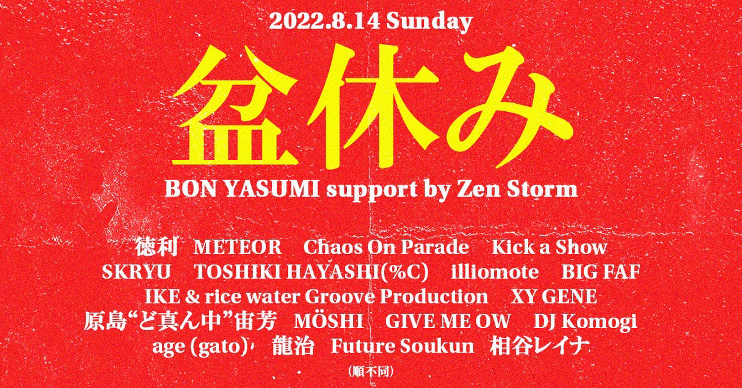 age (gato) / 相谷レイナ / BIG FAF / Chaos On Parade / Future Soukun / GIVE ME OW / 原島 "ど真ん中" 宙芳 / IKE & rice water Groove Production / illiomote / Kick a Show / DJ Komogi / METEOR / MÖSHI / 龍治 / SKRYU / 徳利 / TOSHIKI HAYASHI (%C) / XY GENE