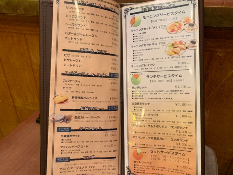 この1週間は暑くてクーラーが手放せなかった。かと思えば、連日雨の週があったり、タオルケットだけではやけに肌寒い夜が訪れたり……あまのじゃくな8月だったな、なんて考える。考えていると待ち合わせの店舗を間違えた。初めての場所への道中に考え事をするのはよくない。今日は念願の「喫茶西武」を訪れる日。“喫茶店のご飯”を取り扱うコラムが避けては通れないお店だろう。Instagramで何回も目にした“ザ☆喫茶店のご飯!”みたいなキラキラしたものたちを今日は食せる!なんて浮かれながらわたしは待ち合わせ場所を間違えた。アルコール消毒まで済ませてしまった西新宿店(2号店)をそそくさと立ち去り、待ち合わせしていた「喫茶西武」本店へと急いだ。