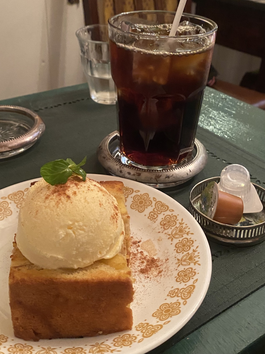 頼んだのは冬期限定りんごのケーキとアイスコーヒーのセット。りんごのケーキは、大きめのりんごの粒がケーキに練り込まれていて本当においしい!優しい味わいのケーキと甘いバニラクリームの相性が抜群で、何個でも食べたい気分……。スッキリとしたアイスコーヒーがケーキの味わいをさらに引き立たせる。おやつの時間がわたしを幸せにする。気づけばペロリと完食していた。ケーキの美味しさとブラックコーヒーの心地よい苦みを噛み締めて夕焼けに染まる江の島をあとにする。今年最後に見る海かもしれないな、と思いつつ陰になっていく海を横目にみる。冷えていく空気とは裏腹に、心の中はぽかぽかしていた。