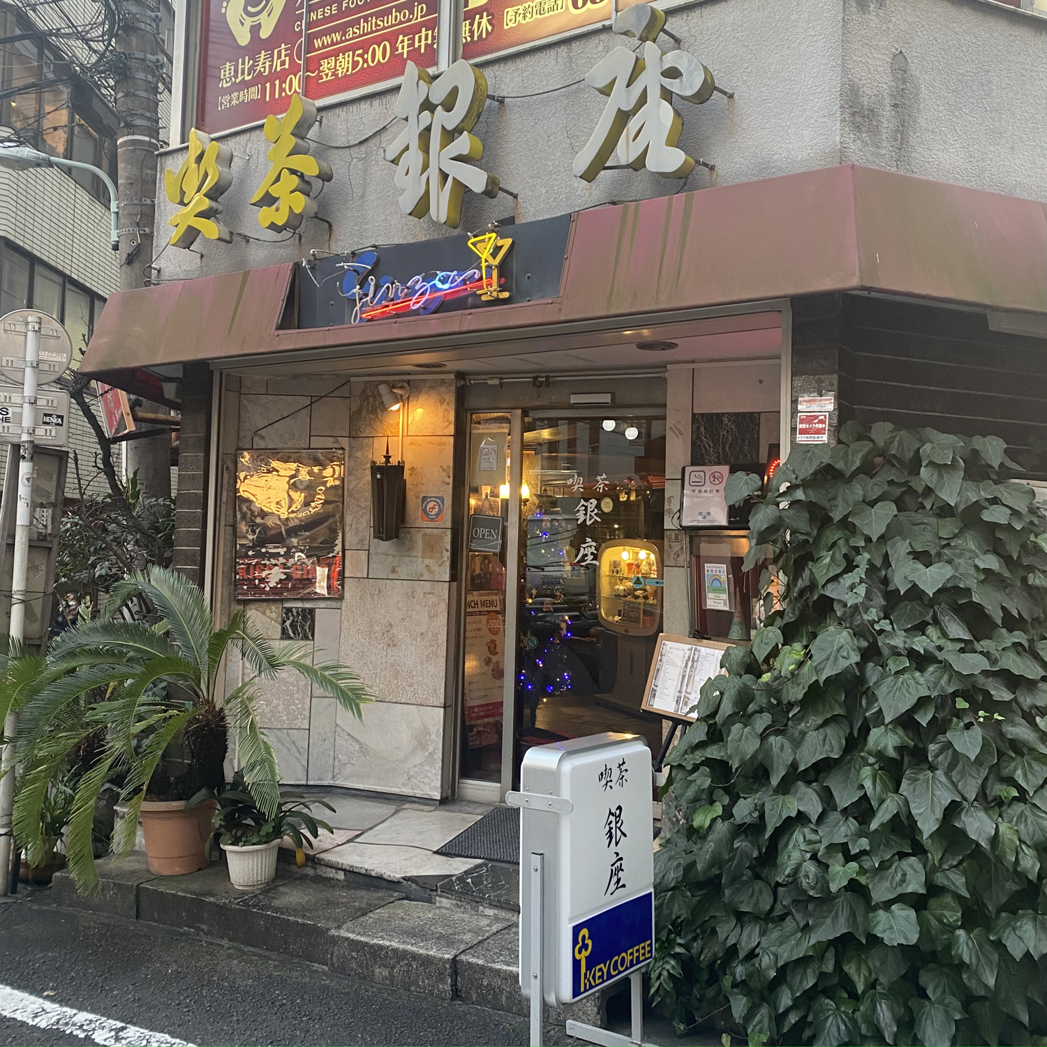 TimeOut Café & Dinerでよくライヴさせていただいていることもあり、少しだけ恵比寿という町を歩けるようになっていた。リハーサルとライヴの間にお散歩をしているとき、見つけたのがこちらの「喫茶 銀座」。外観からして一目でタイプの喫茶店だとわかった(HITOMEBORE)。