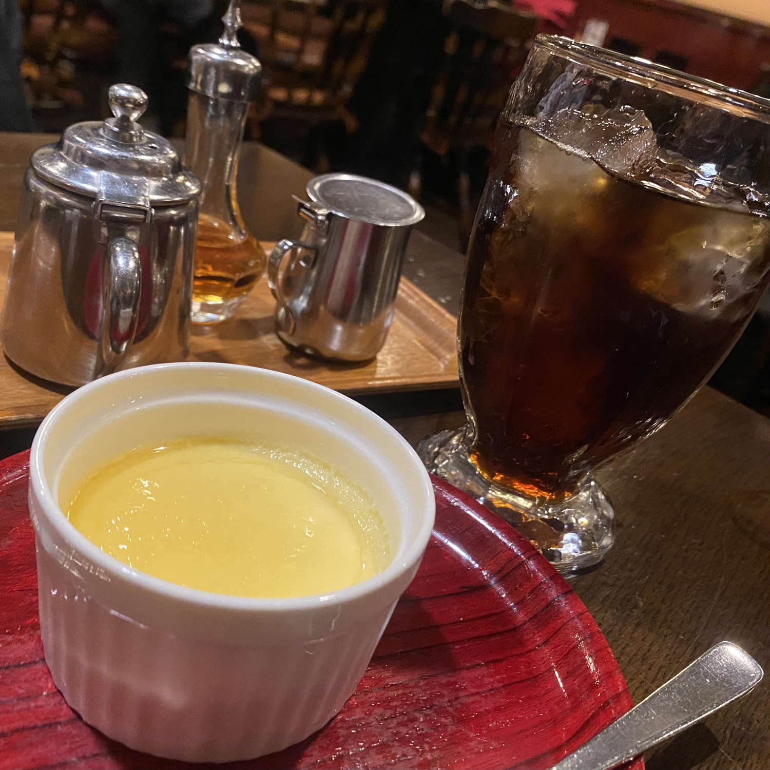 お待ちかねのハイチコーヒー(アイス)にはブランデーが一緒に運ばれてくる。まろやかでほどよい酸味。一緒に頼んだグレープフルーツのプリンとのバランスが良い……!なんといってもこのグレープフルーツのプリンが本当においしくて、おいしいかな?と半信半疑のままオーダーをしたが、柑橘の爽やかさがぷーんと鼻に抜け、ほどよい甘みが口いっぱいに広がる。これはきっと自家製でしか出せない味わい。グレープフルーツのプリン、めちゃくちゃにおすすめです。