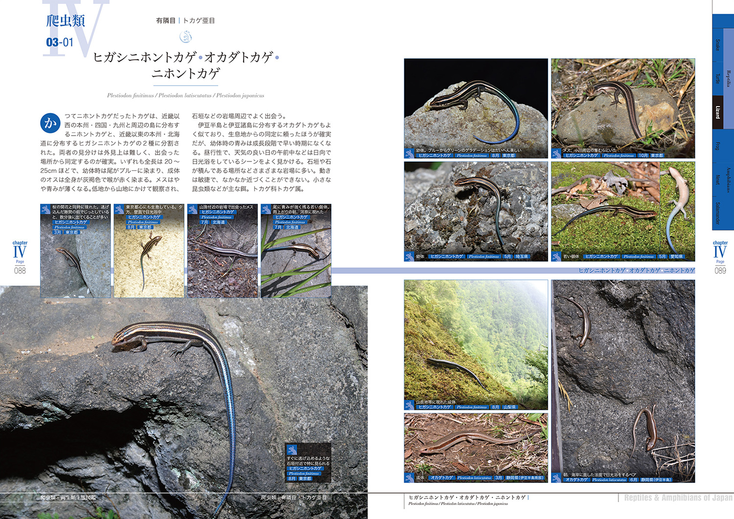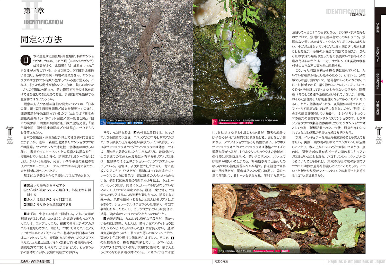 改定にあたり、初版以降に撮影された新種 / 地域個体群の写真を100点強追加し、2020年1月現在における最新の分類で掲載。背 / 腹側、指先なども捉えた写真群で、国内に暮らす爬虫類 / 両生類の姿を正確に把握できます。