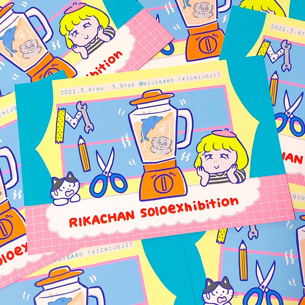 2019年11月に東京・阿佐ヶ谷 VOIDで開催した「りかちゃんスポーツフェスティバル」以来約1年ぶりのソロ・エキシビションとなる「MIX」では、これまで描き溜めた絵を、様々な素材との組み合わせやコラージュで“ミックス”した作品を展示販売。併せてリングノート、マグネットや、「CORNER PRINTING」製のロングスリーヴTシャツ、トートバッグなどのマーチも販売されます。