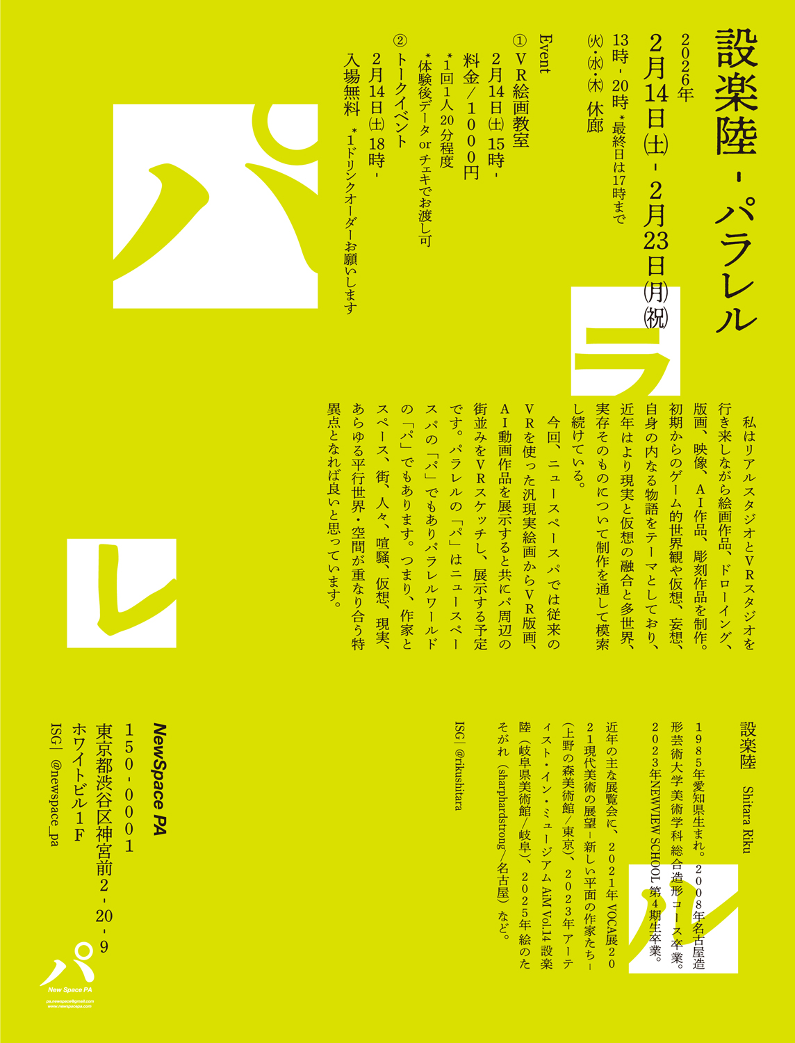 「パラレル」の「パ」は、ニュースペース パの「パ」であり、パラレルワールドの「パ」でもあります。作家とスペース、街、人々、喧騒、仮想と現実――あらゆる平行世界が重なり合う特異点となることを目指しています。