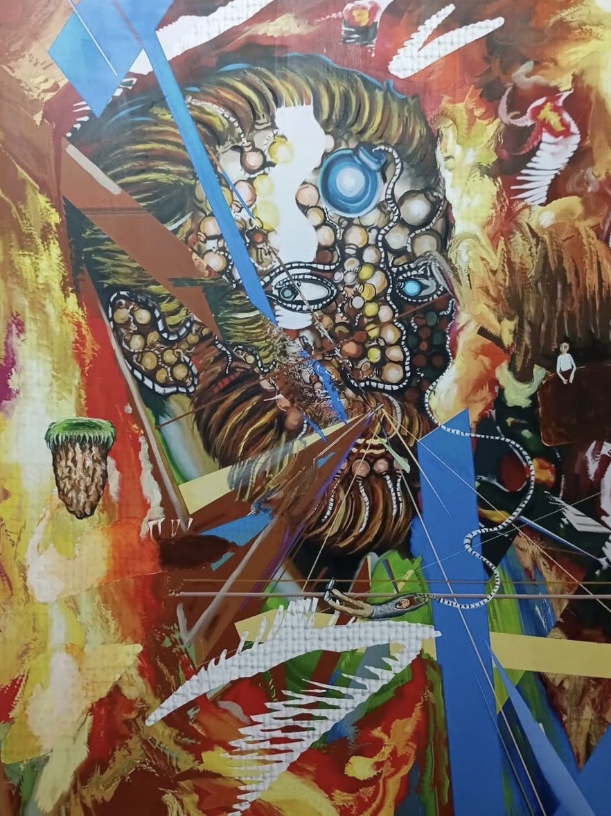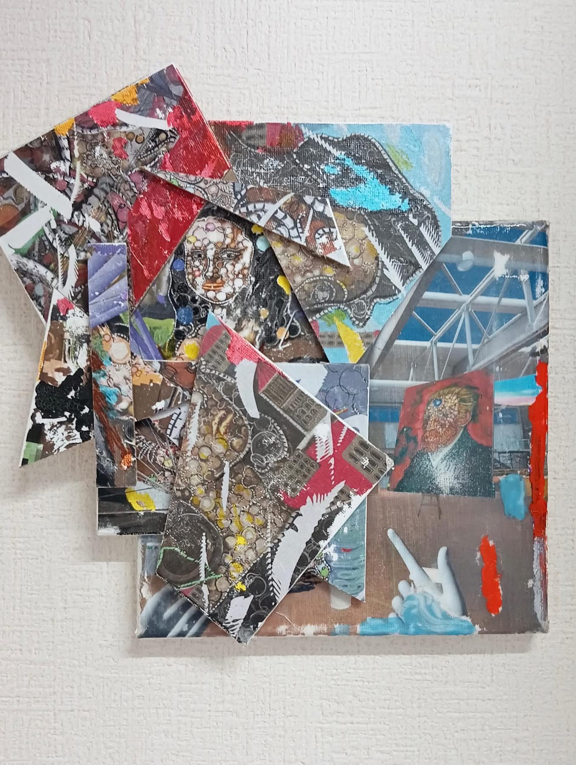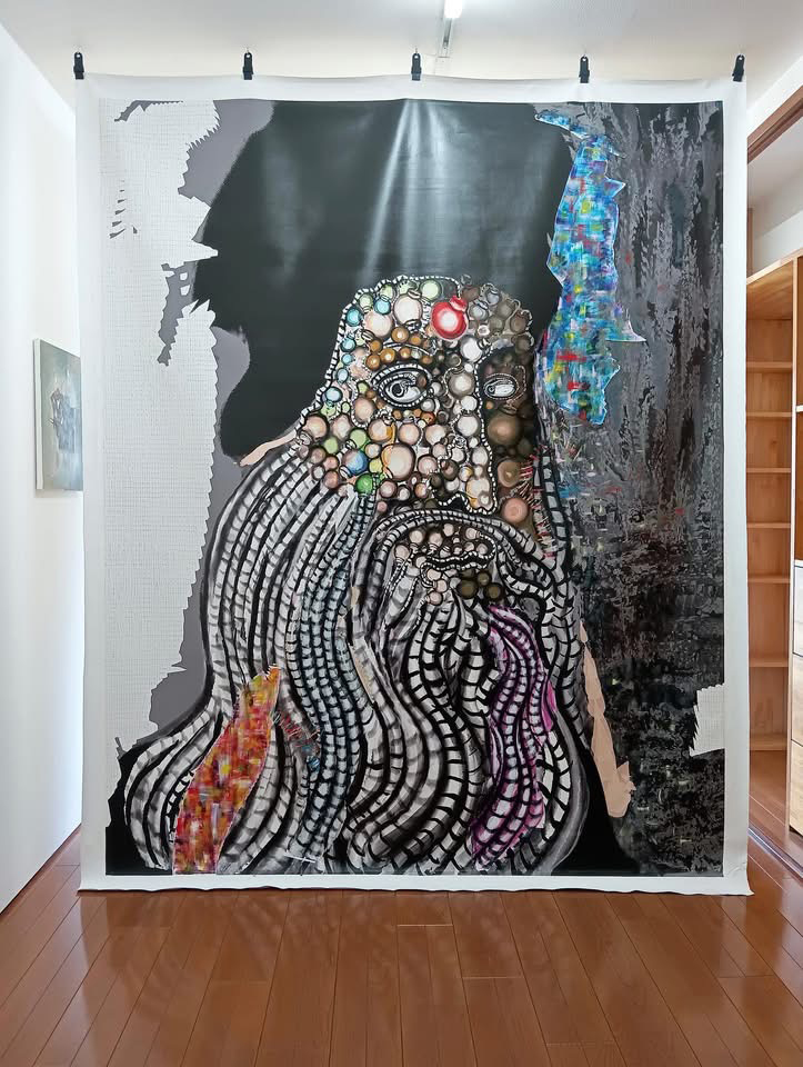 私はリアルスタジオとVRスタジオを行き来しながら、絵画、ドローイング、版画、映像、AI作品、彫刻などを制作してきました。初期から一貫して、ゲーム的世界観や仮想、妄想、自身の内なる物語をテーマとし、近年は現実と仮想の融合、多世界、実存そのものについて模索を続けています。