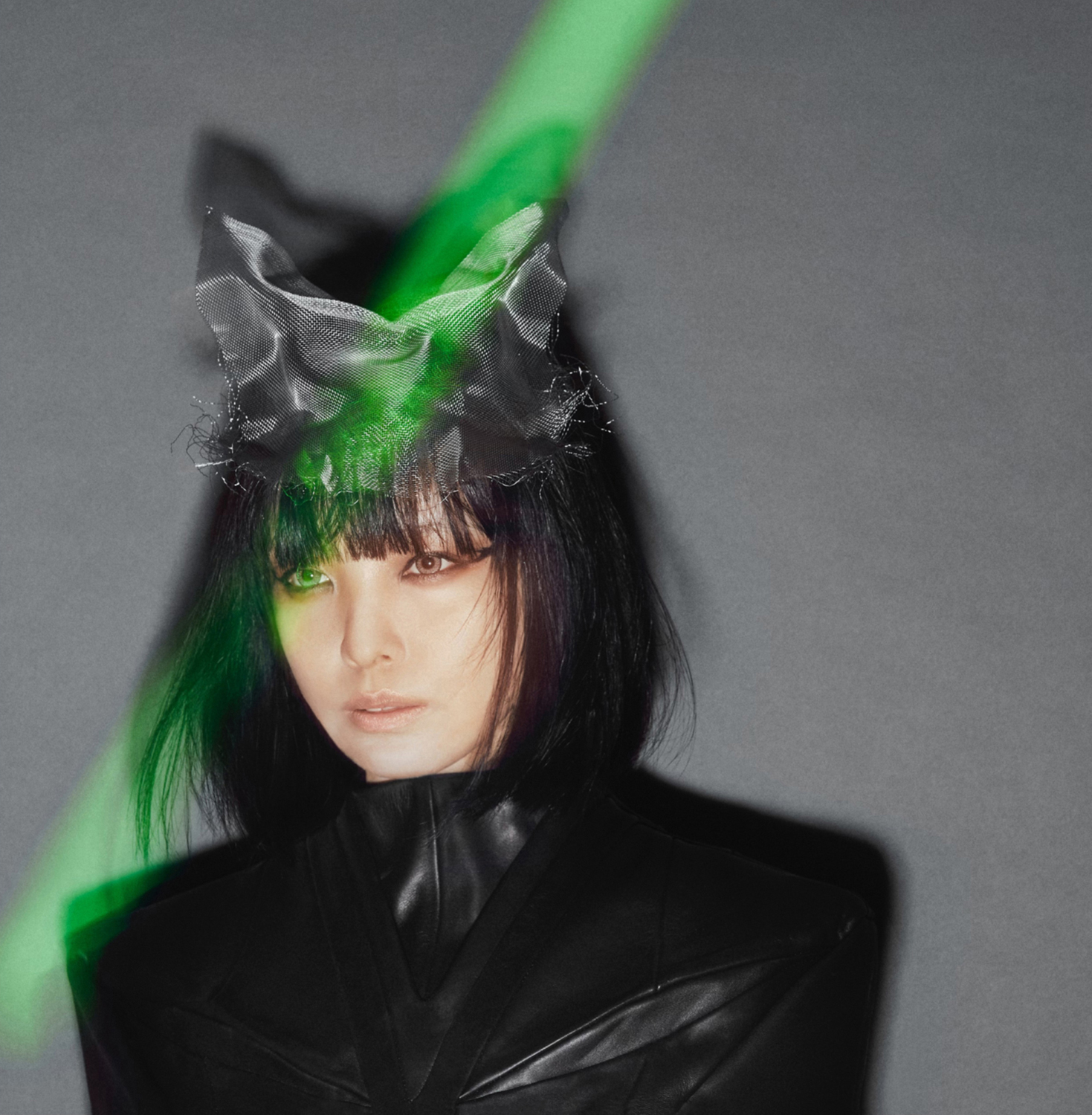 「これは全部本物です。スカートになっていて、すごく長くて引きずるようなデザインのものを、バッとまくって上に吊ってあります。だから、後ろから見たらお尻が出ているんですよ(笑)。si ouxさんという、服のデザインやモデル、調香師など、いろいろなことを手掛けているクリエイターのかたにアートディレクションをお願いしたのですが、曲とヴィジュアルのイメージを伝えたことろ、炎や太陽などのイメージでこれを見つけてきてくれたんです。HISUI HIROKO ITOさんの作品です。『DANCE CULT』『BLACK NIGHT KITTY』『PLASTIC SAKURA』のジャケット写真は、どれもsi ouxさんのディレクションで同時に撮影しました。そこから、どれをアルバムのジャケットにしようかと考えて、もしかしたら『PLASTIC SAKURA』で使われている写真になる可能性もあったんですけど、アナログ・レコードにするとき、この引き絵の写真がアルバムになると映えるなぁと思ってこの写真に決めて、アルバムのタイトルも『DANCE CULT』にしました」