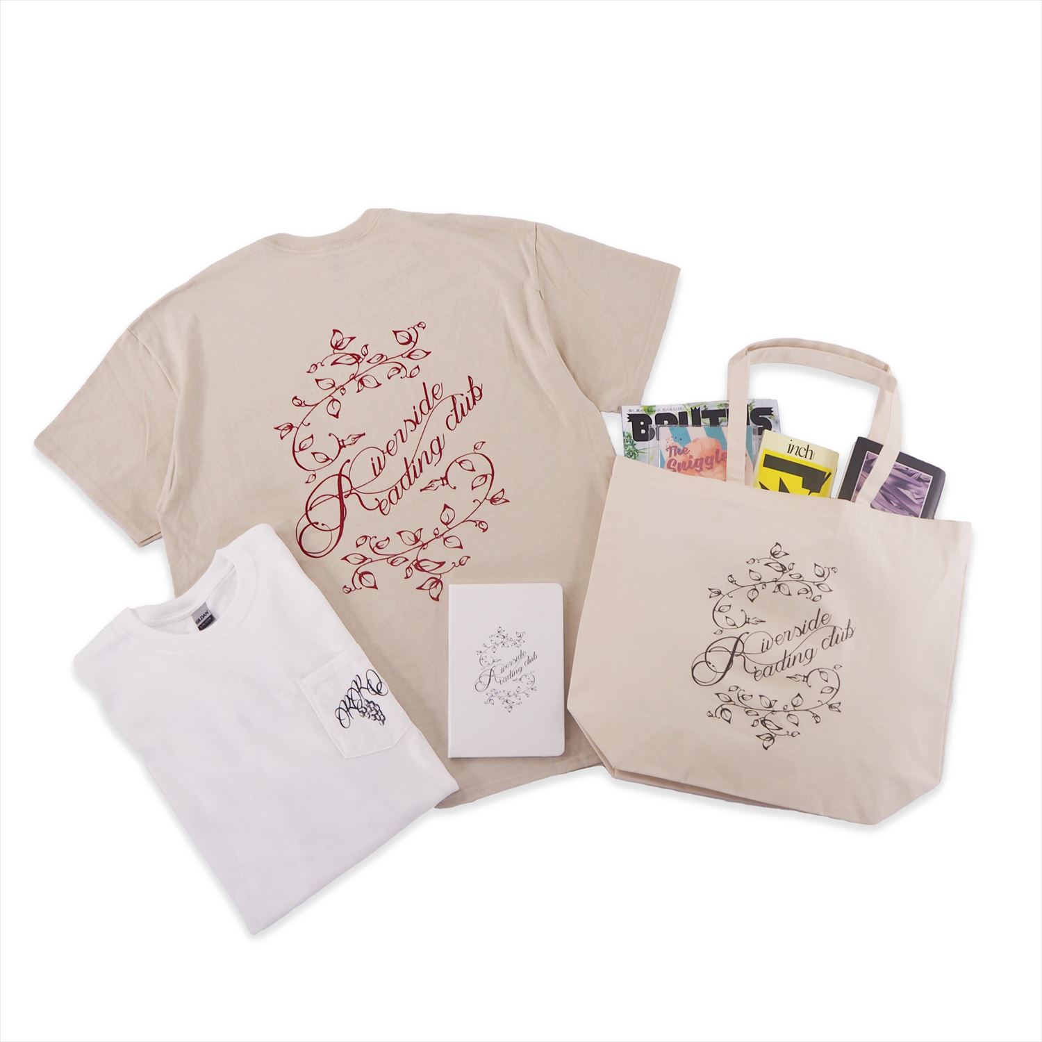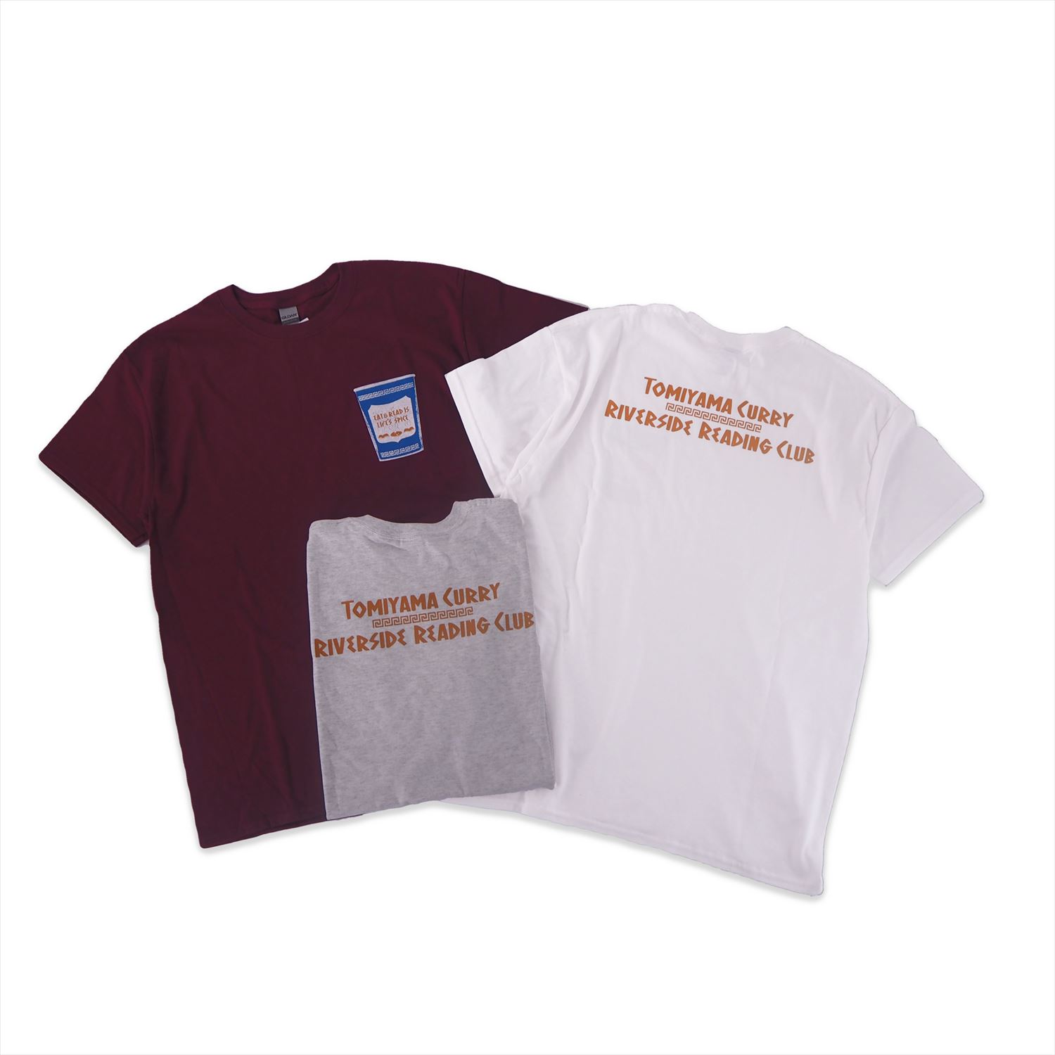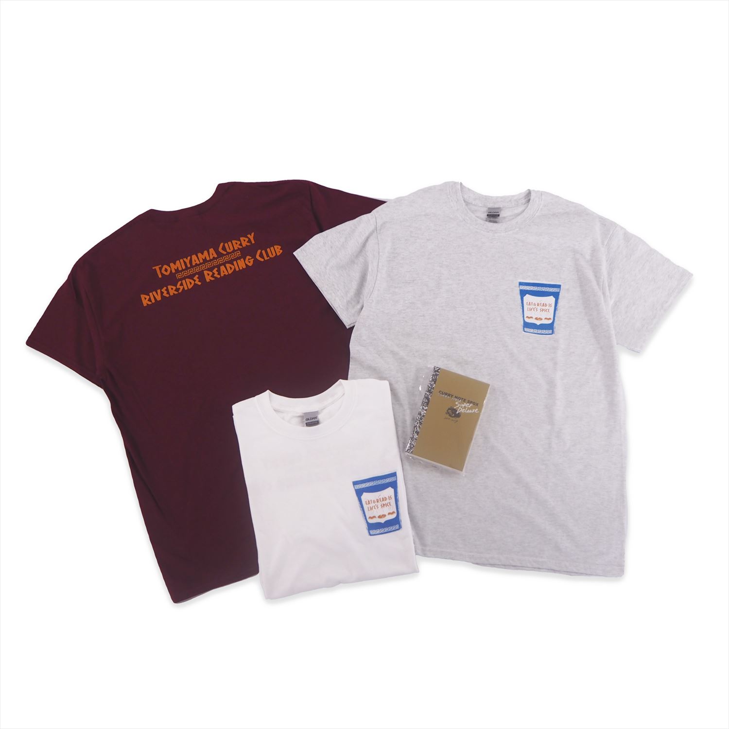 同展では、「Riverside Reading Club」のロゴTシャツ、ペーパーバッグ、ブックノート、トートバッグなどに加え、東京・大塚 トミヤマカレーとのコラボレーションTシャツ、グラフィックデザイナー・宮崎希沙が210店舗のカレー店レビューをまとめたジン『CURRY NOTE SPDX』も販売されます。