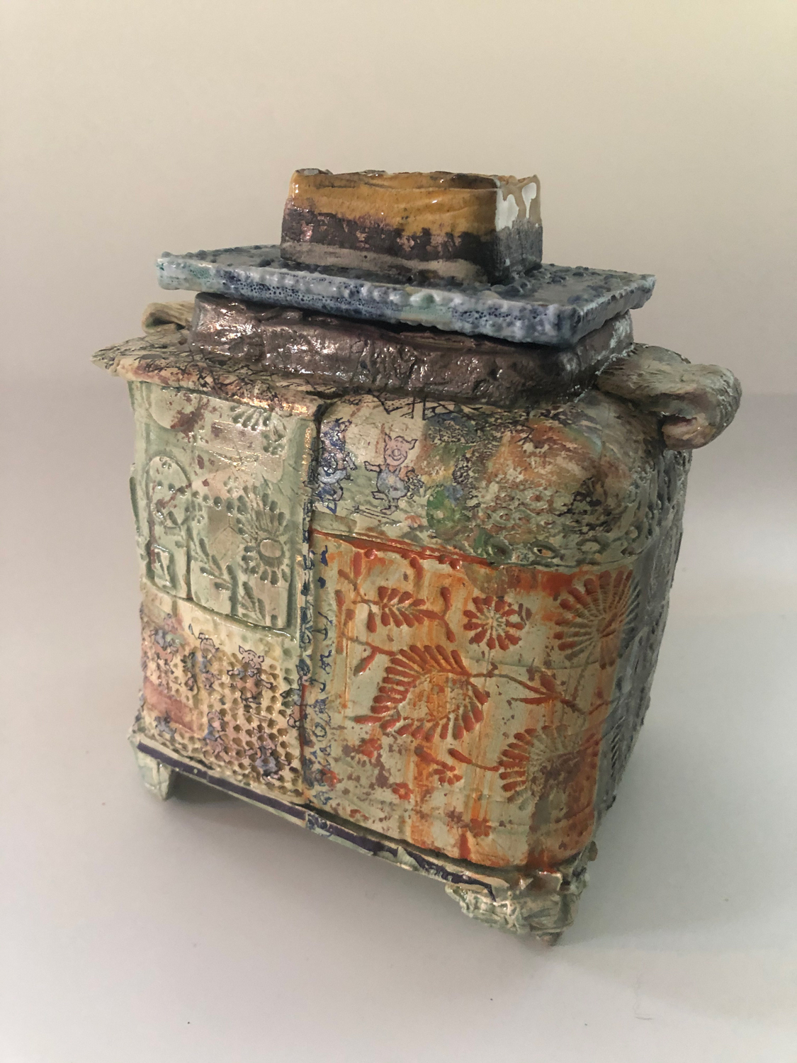 拾ってきた物を使い、描き、柄や形を構築して表面を形成し、そこから新しい、私的なものを作り上げていきます。