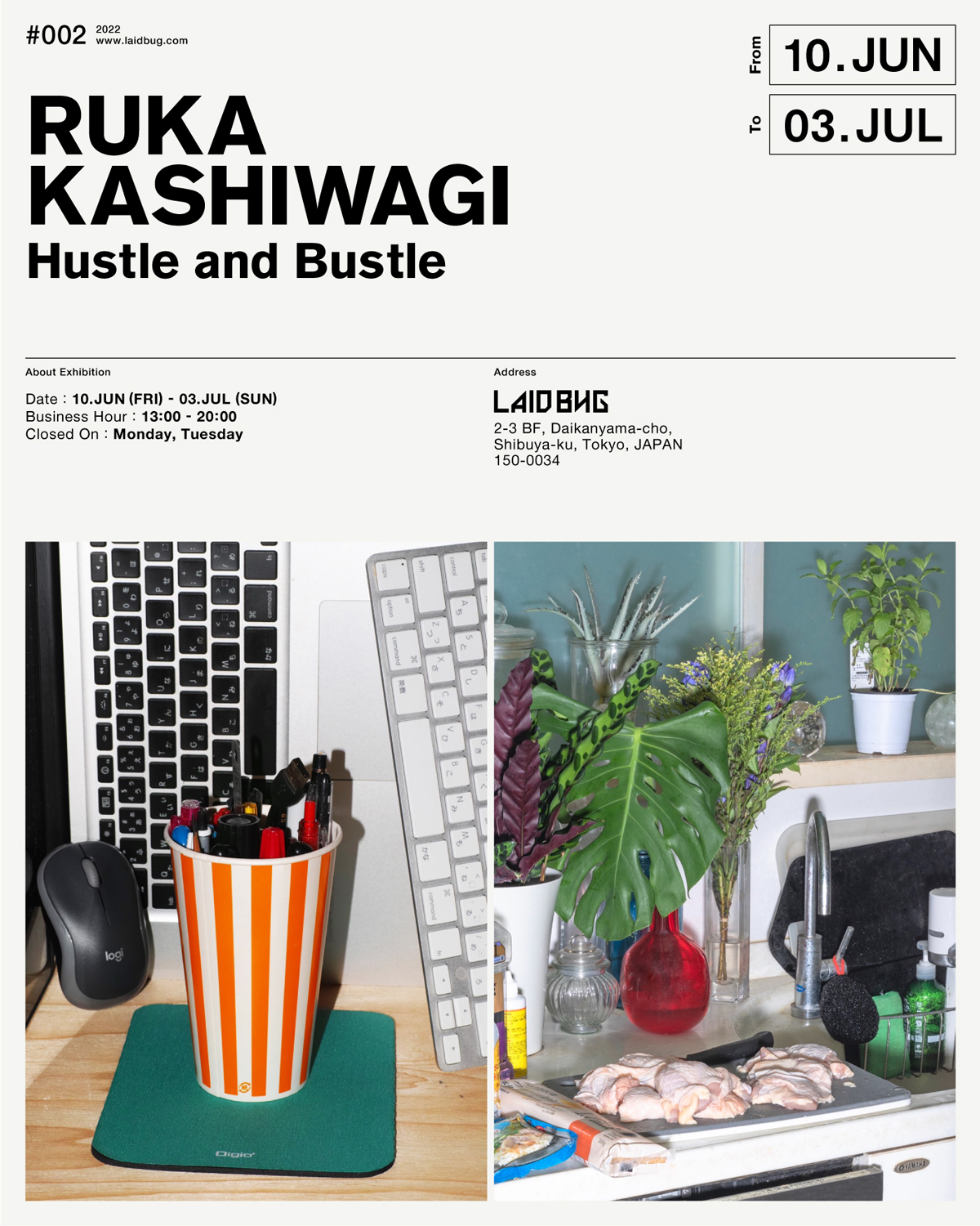 今年4月に東京・初台から代官山へと移転したアート・ギャラリー / クリエイティヴ・スタジオ「LAID BUG」にて、写真を中心に活動する柏木瑠河がソロ・エキシビション「Hustle and Bustle」を6月10日(金)から7月3日(日)まで開催。