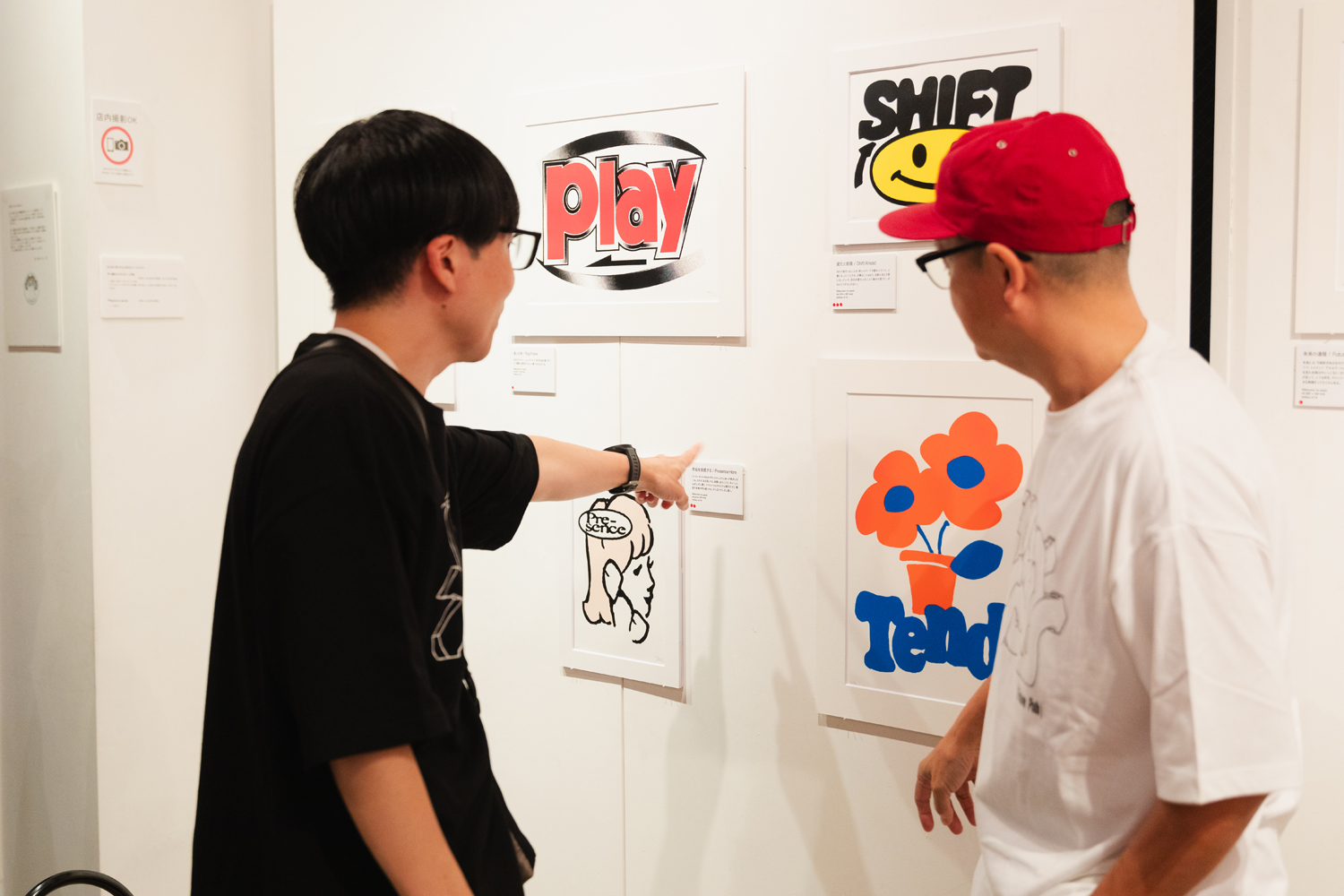 B 「改めまして、初個展の開催おめでとうございます。今回はTシャツがテーマで、田口くんはスチャダラパーもそうだけど、今まで作ったTシャツは依頼されて作ったもので。でも今回は100%“俺の考えるTシャツはこうだ”っていう自分発信」