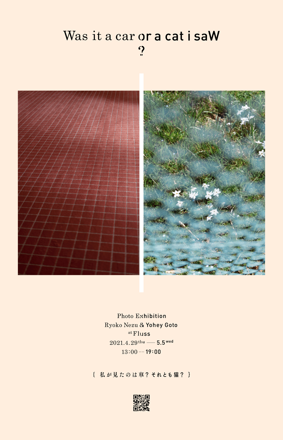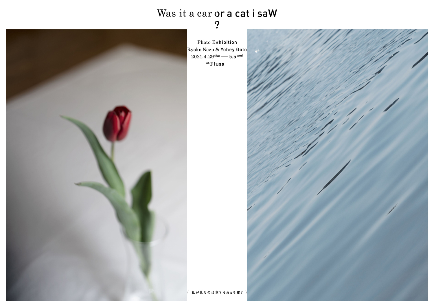 写真家・後藤洋平と祢津良子が、コラボレート写真展「Was it a car or a cat I saw? { 私が見たのは車?それとも猫?}」を4月29日(木)から5月5日(水)にかけて東京・尾山台 Flussにて開催。入場無料(要事前予約)。