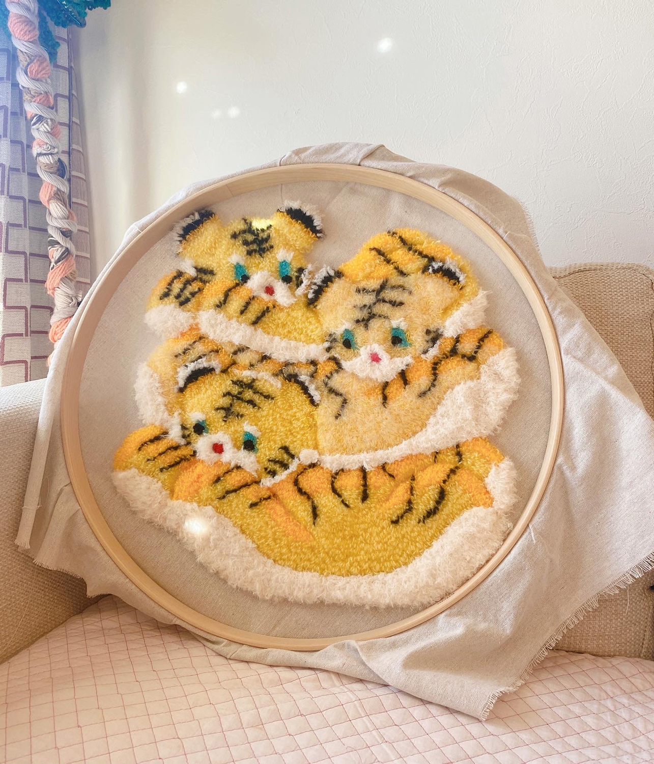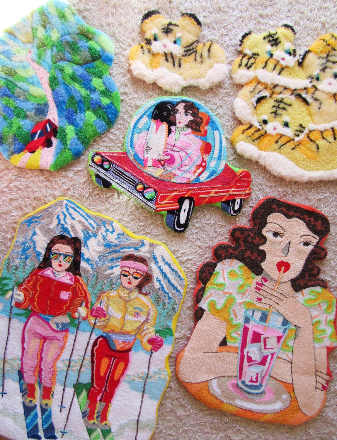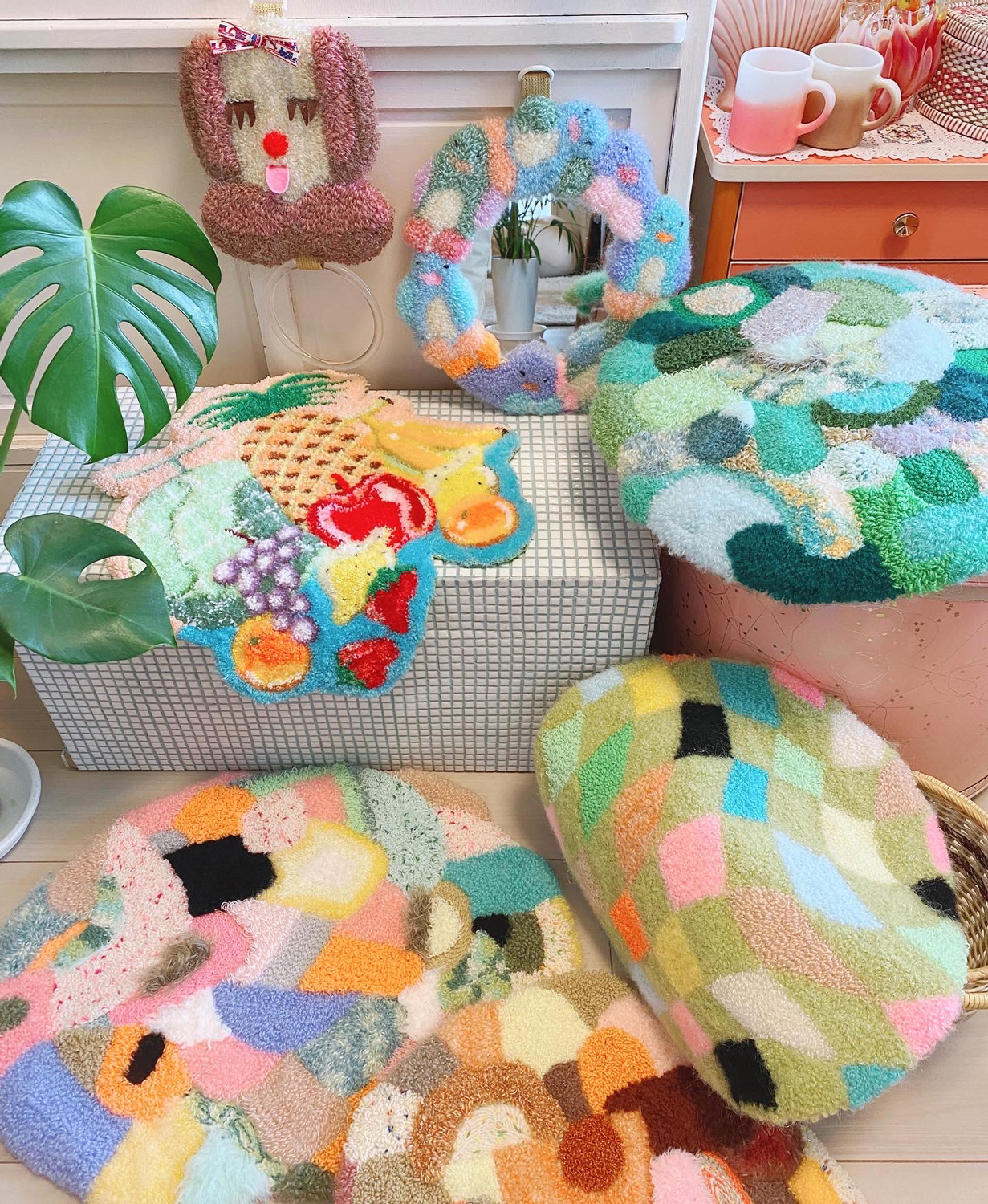 “さぶ”の名前の由来である“サブリナ”をタイトルに冠した同展では、2019年11月に東京・表参道 ROKETで開催した毛糸作品での初個展「yarn yarn」や、昨年1月から2月にかけて東京・原宿 WALLに出店したポップアップ・ショップ「ブティックさぶ」に続き、手芸作品を中心に展示販売。パンチニードルやフッキングなどラグの手法を用いた作品、パッチワーク、レトロなキルティング生地で作った「へたくそバック」などのハンドメイド作品のほか、2019年から今年にかけて制作したハンドメイド作品を掲載する冊子『もしかしてハンドメイド』や、パズル、ネイルシール、アップリケ、山入端祥太デザインの個展ロゴをあしらったPVCバッグなどのアイテムも販売されます。「food circus」のクッキー缶も特別販売。初日は整理券を10:00より配布予定。通信販売も予定されています。