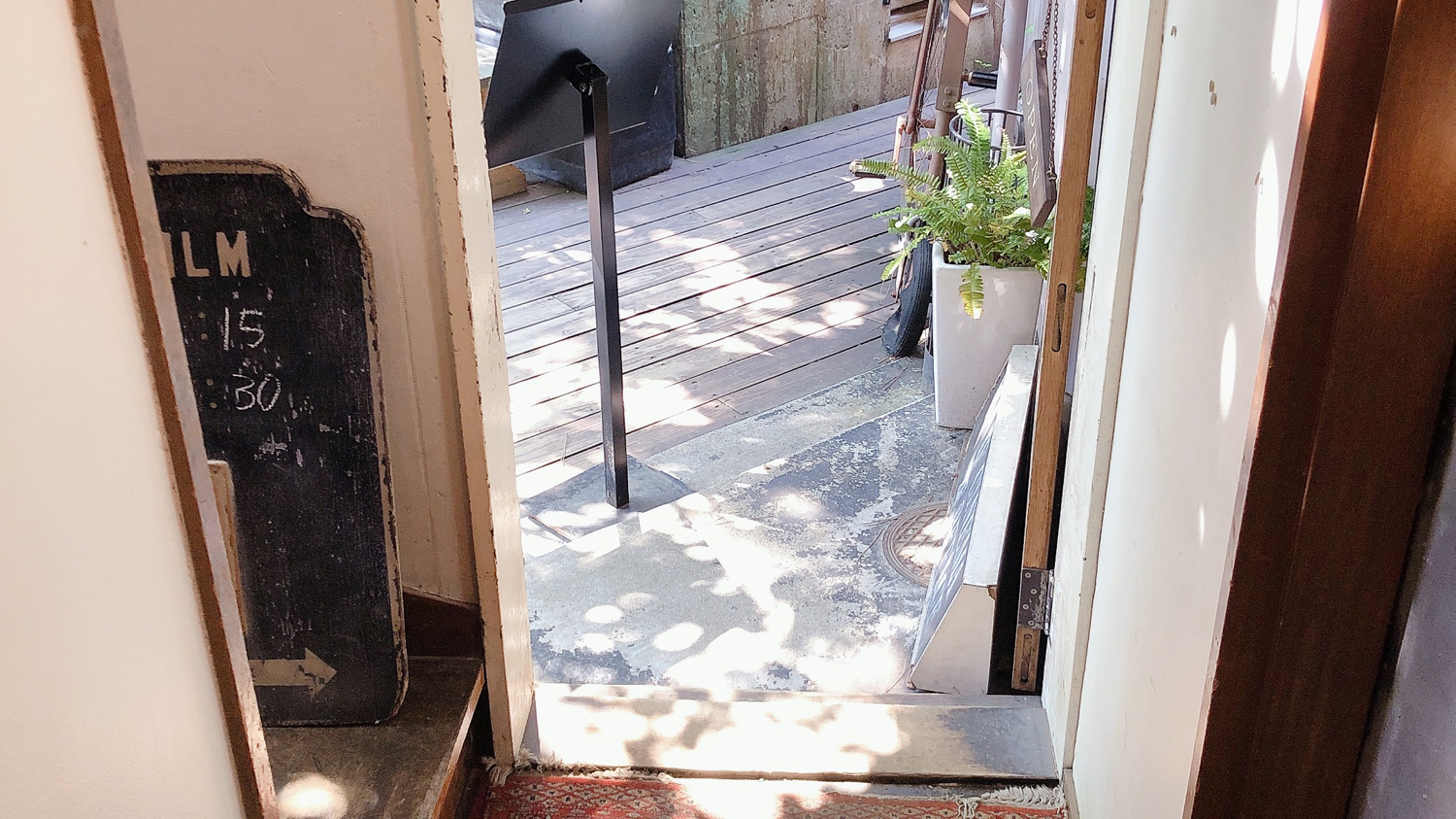 木漏れ日が綺麗で、入る前から素敵な気分になります。入り口は少しレトロな雰囲気。