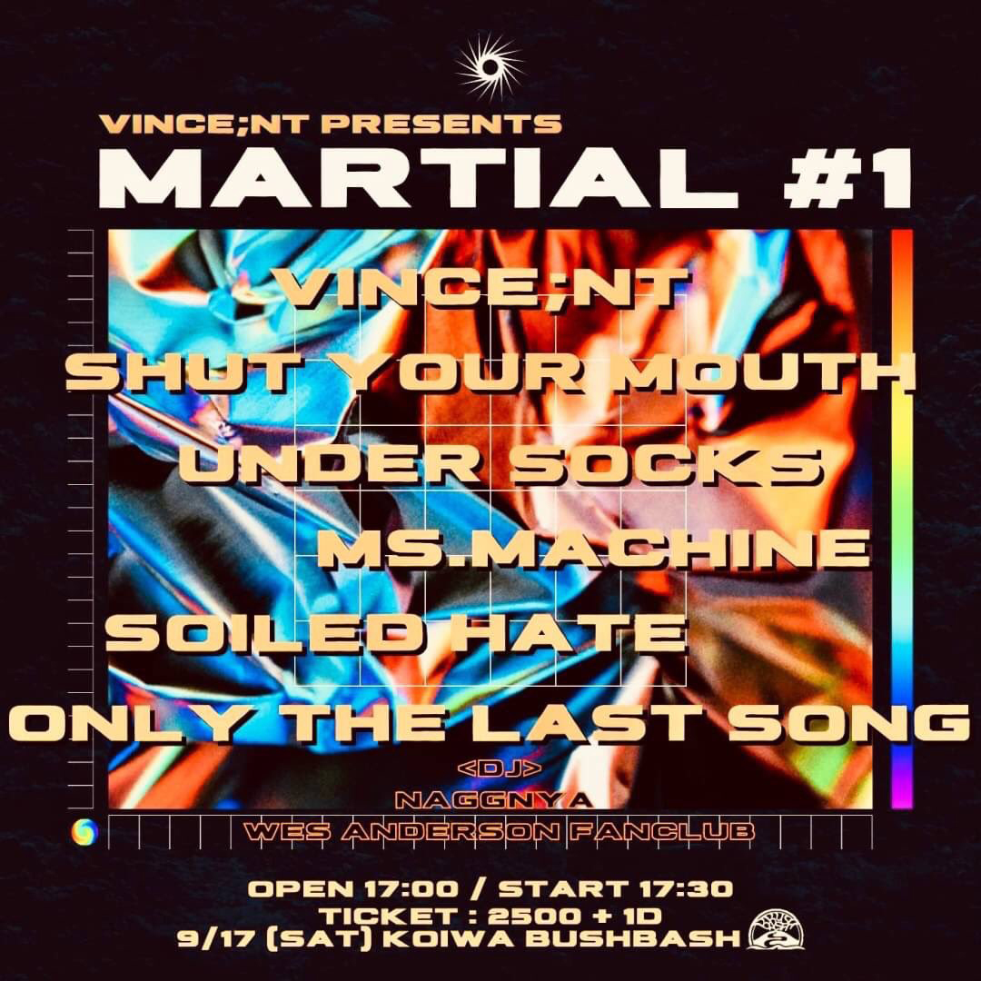 Ms.Machine / ONLY THE LAST SONG / SHUT YOUR MOUTH / SOILED HATE / UNDER SOCKS / VINCE;NT