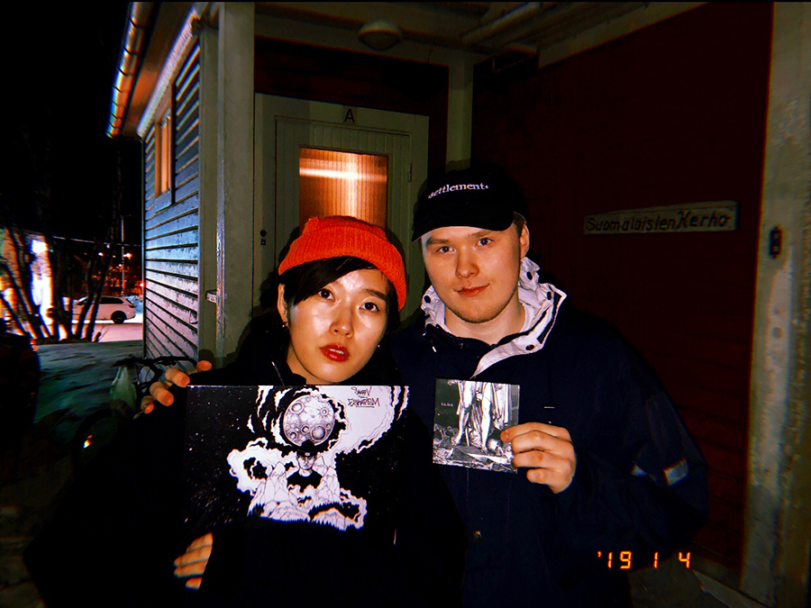 今年の冬にレコーディングでスウェーデンに行った時、タイミングが合って彼のライヴを観ることができました。ハードコア・バンドSETTLEMENTとのストレートエッジ・イベントだったのですが、地下ではなく普通の一軒家の1階でのライヴというのが衝撃でした。写真のSkarpと私の後ろにある建物がそれです。SETTLEMENTのメンバーに話を聞いたところ、そこはたまに借りてライヴをやっているヴェニュー(海外ではライブハウスのことを“venue”と言うのです)だそう。今年の夏にMILKとLOW VISIONのアメリカ・ツアーをインスタで見ていた時、キッチンみたいなところでのライヴがストーリーに上がっていて、ちょっと衝撃だったのを思い出しますが、海外では家でのライヴは結構普通なんでしょうか。いいなあ。