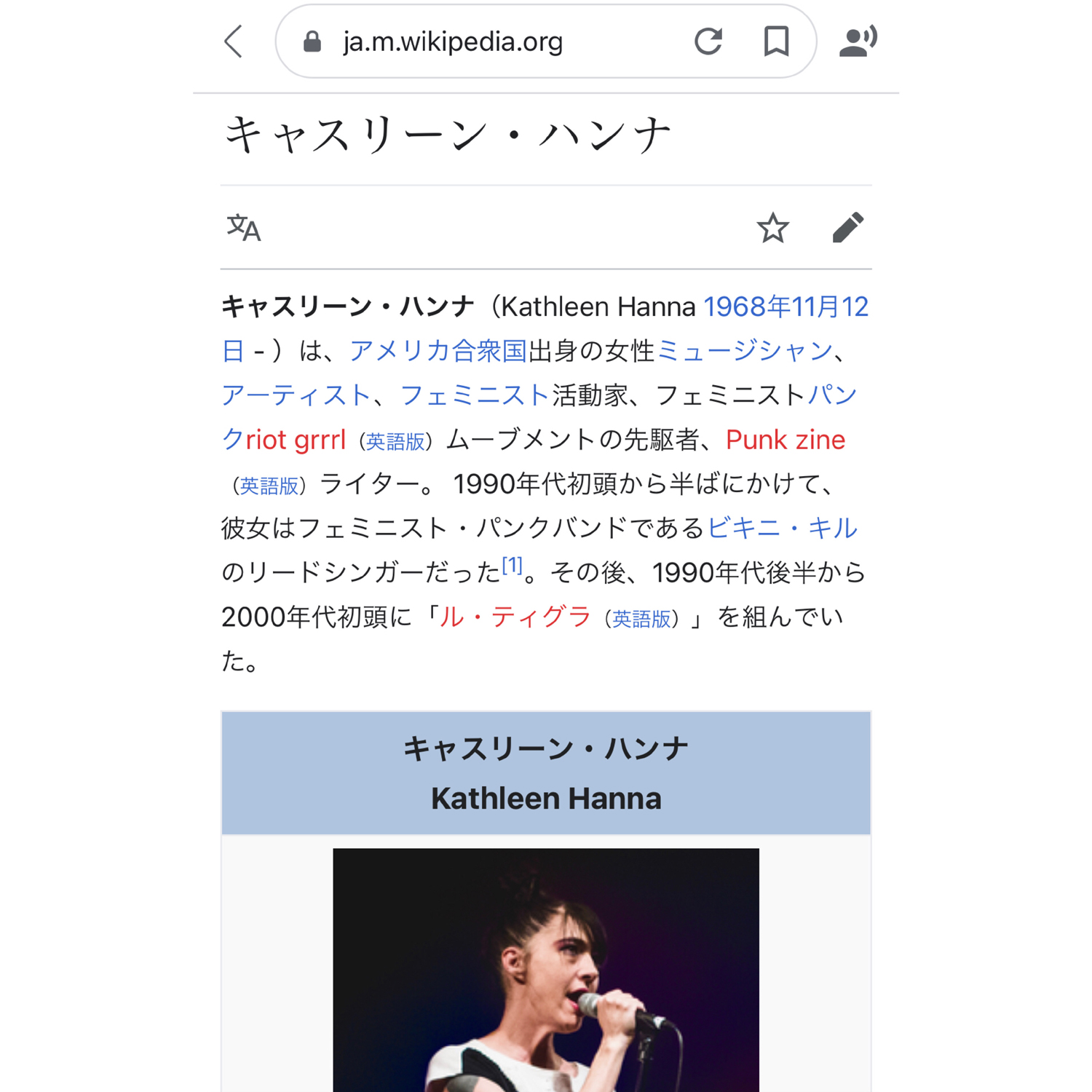 私はBIKINI KILLのヴォーカリストKathleen Hanna(キャスリーン・ハンナ)の日本語版記事がなかったので、英語版から翻訳して記事を作成しました。英語翻訳はGoogle翻訳、語学学習アプリにわからない箇所を投稿して教えてもらう、知り合いのかたに教えてもらうなど、かなり人の手を借りました。その節はありがとうございました……!