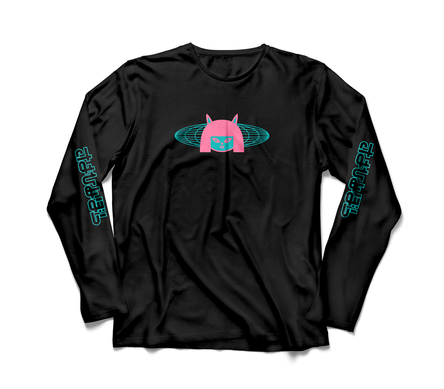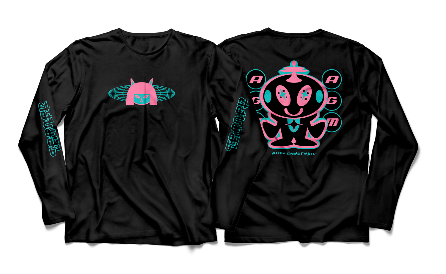 さよひめぼう『ALIEN GALAXY MAIL』のリリースを記念したGraphersRockデザインのロングスリーヴTシャツ。フロントにアーティスト・ヴィジュアル、バックにアルバム・イメージ、両袖には“さよひめぼう”の文字をプリント。