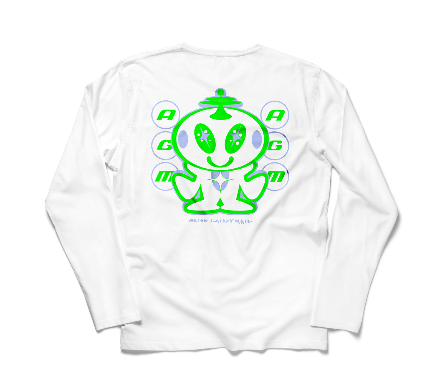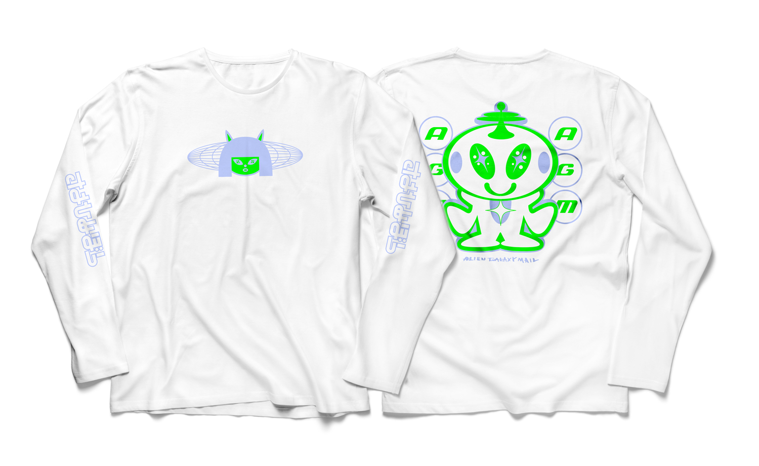 さよひめぼう『ALIEN GALAXY MAIL』のリリースを記念したGraphersRockデザインのロングスリーヴTシャツ。フロントにアーティスト・ヴィジュアル、バックにアルバム・イメージ、両袖には“さよひめぼう”の文字をプリント。