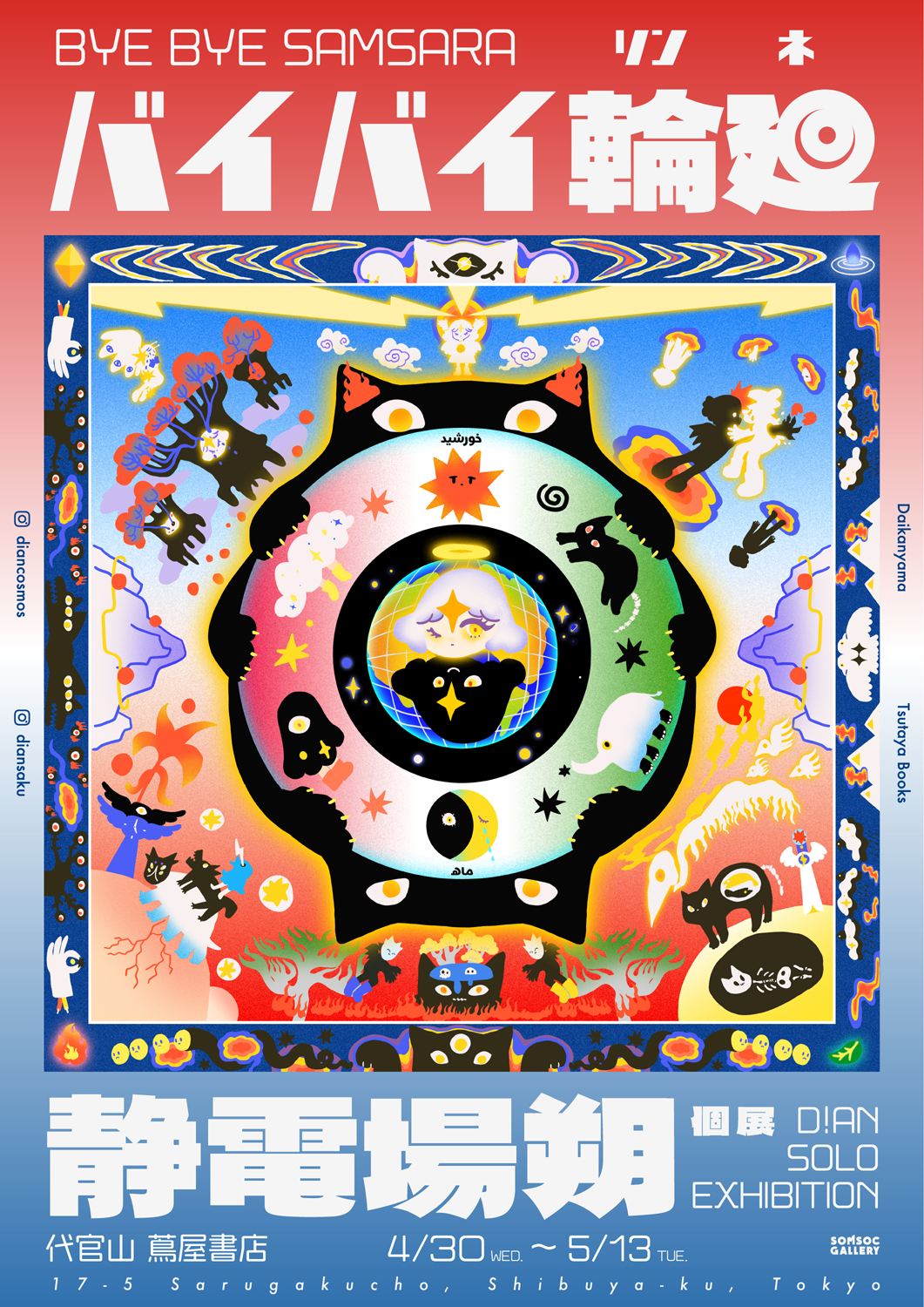 昨年は1stアルバム『問題児(Question Children)』を発表し、今年もDÉ DÉ MOUSEとのコラボレーション・シングル『STYLISH ラヴ』が好評を博している静電場朔が、ソロ・エキシビション「バイバイ輪廻(Bye-bye Samsara)」を4月30日(水)から5月13日(火)まで東京・代官山 蔦屋書店 2号館 1Fギャラリースペースにて開催。