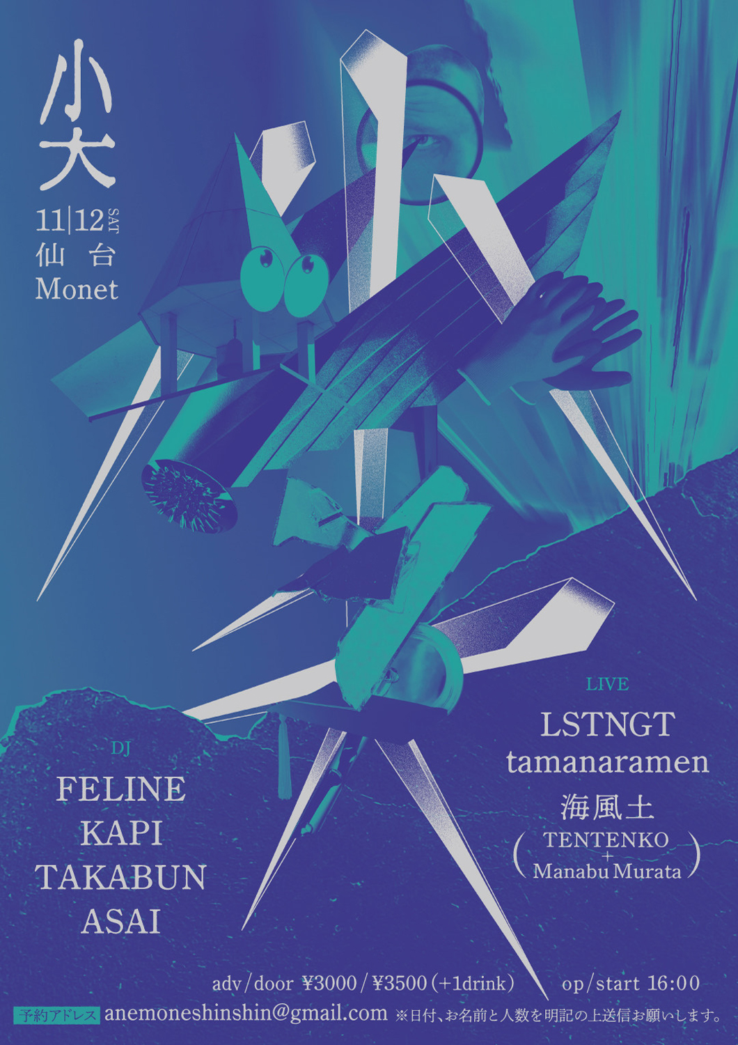 | 予約 anemoneshinshin@gmail.com