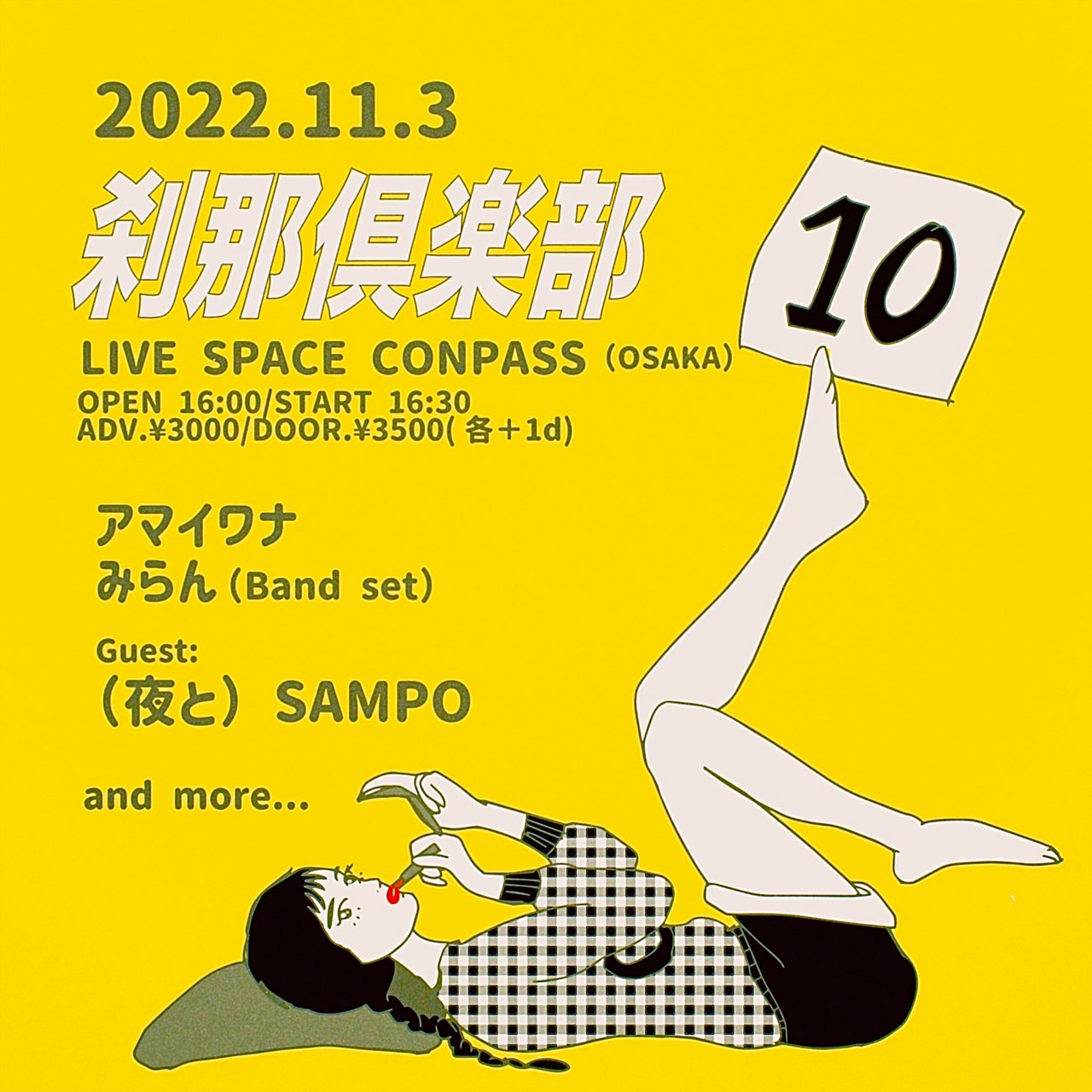 今年5月にTHEラブ人間をゲストに迎えて東京・下北沢 THREEにて開催された“第9話”に続く同イベントでは、ゲスト第1弾として2月に2ndミニ・アルバム『はだかの世界』を発表したいくみ(vo | ex-加速するラブズ)、加藤秋人(b)、清水昂太朗(key | irummi)、寺岡純二(dr | ex-フィッシュライフ)、吉野エクスプロージョン(g | ex-ハンブレッダーズ)によるバンド“(夜と) SAMPO”の出演が発表されています。