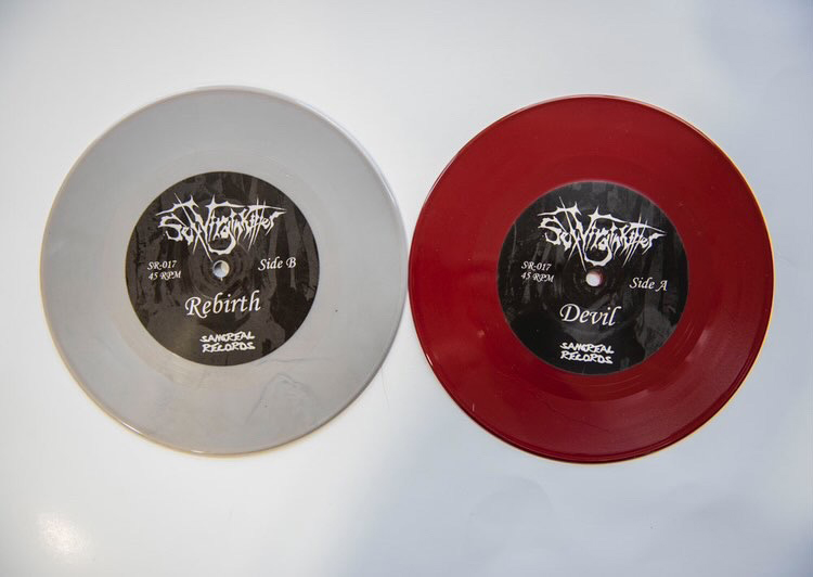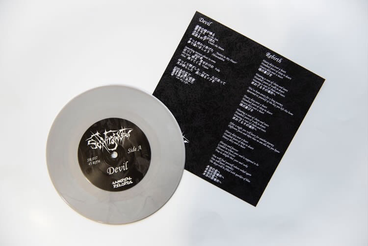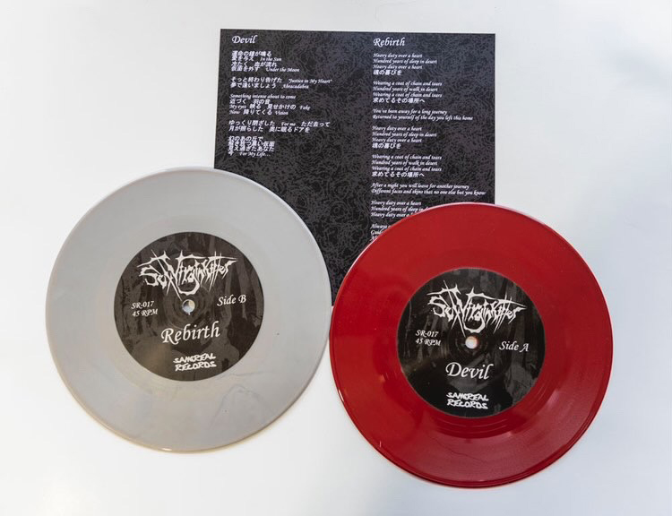 また、SHITFUCKERとの親交で知られるAlejandra Villegasが主宰する米デトロイトMIの当代トップ・メタルパンク・レーベル「Sangreal Records」が、『VAZINISM』の新装デジパックCDエディションに続き、復活第1作となった2021年のシングル『Devil / Rebirth』を7"フォーマットでヴァイナル・リイシュー。2月14日より販売が開始されています。盤はレッドとシルヴァーの2色。国内流通分は95枚限定とのこと。