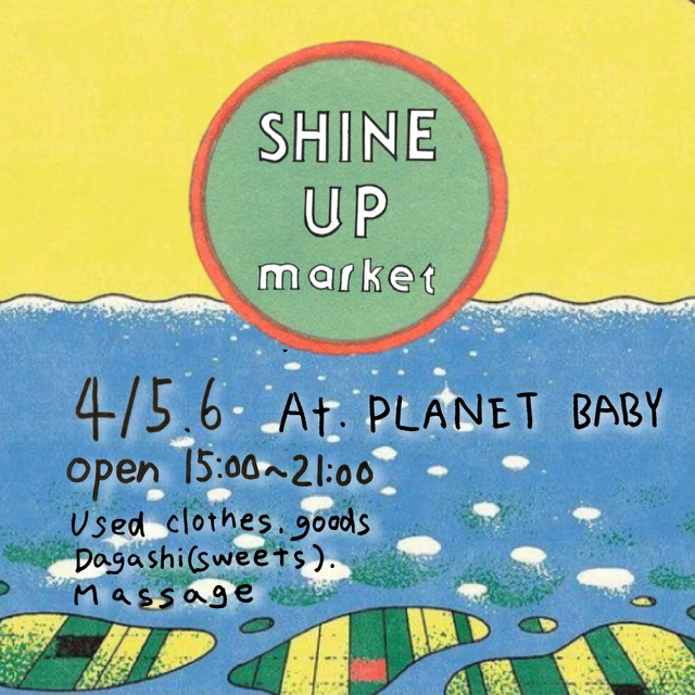 DJとしても国内外で活躍する清水啓達 aka Chee Shimizu + 清水加奈子 aka EEE夫妻が東京・下井草で営むショップ「PHYSICAL STORE」内のサロン / セレクトショップ「PLANET BABY」にて、古着を中心としたフリーマーケット「SHINE UP market」が4月5日(土)、6日(日)の2日間に亘って開催されます。