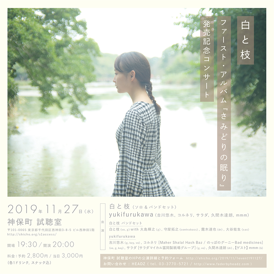 昨年11月に初のフル・アルバム『さみどりの眠り』を発表した田中里枝 aka “白と枝”が、数ヶ月ぶりとなるライヴ・パフォーマンスを10月13日(火)20:00より東京・三鷹 SCOOLのYouTubeチャンネルにてライヴ配信。