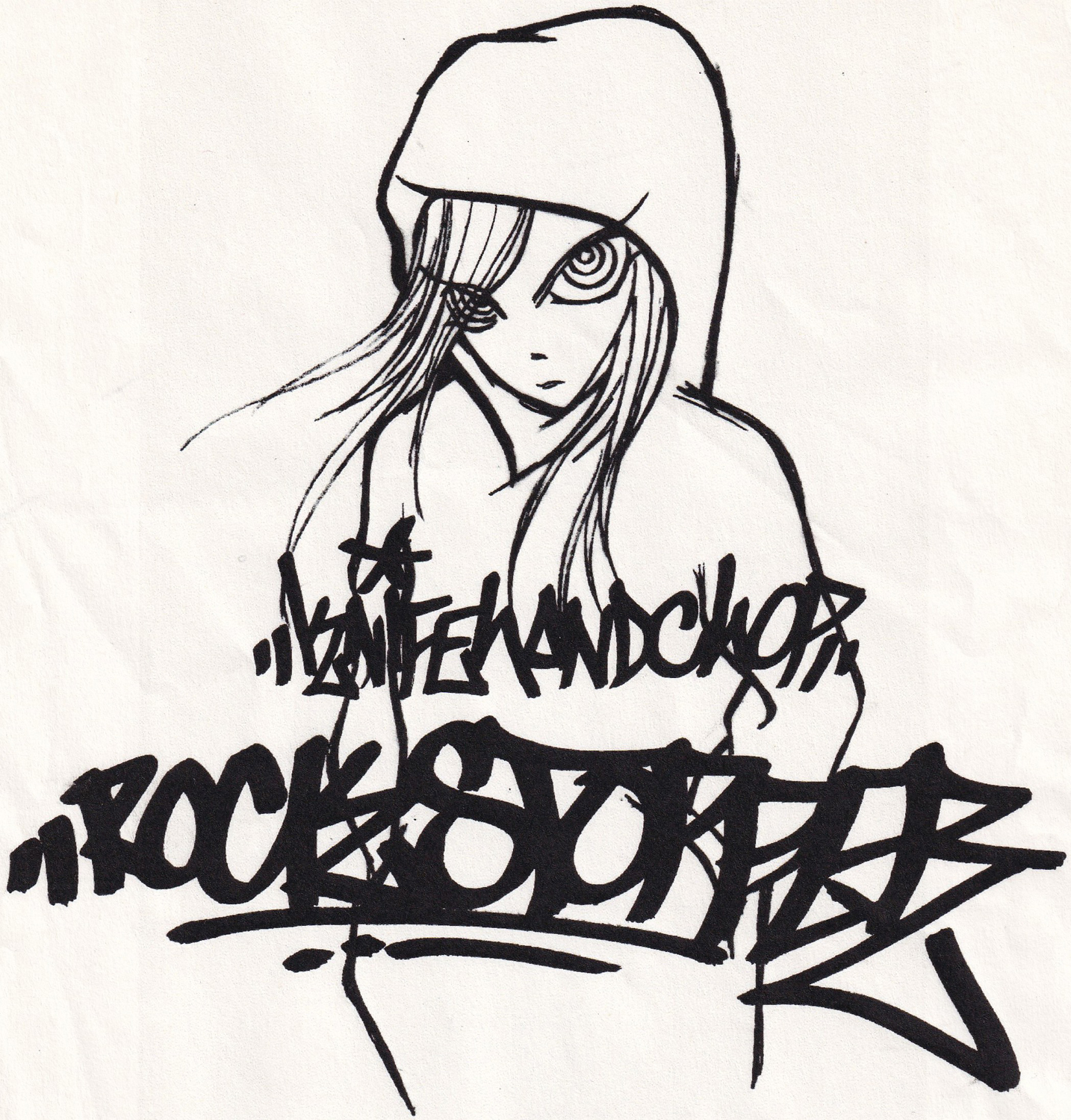 「フードをかぶった女の子のイラストは私が描きました。ドイツのクラブ・シーンにいる、シンプルな服装でより強い個性が際立つ女の子をイメージしています。音楽関係でいうと、ファッション誌『commons & sense』(CUBE INC. | 河出書房新社)で近田春夫さんの特集ページにイラストを描いたこともあります。メンバーどちらもデザイン専門学校卒で、勤めていたデザイン事務所が廃業したのをきっかけに始めました。1995年くらいなのかなぁ……年代ははっきりわかりません」