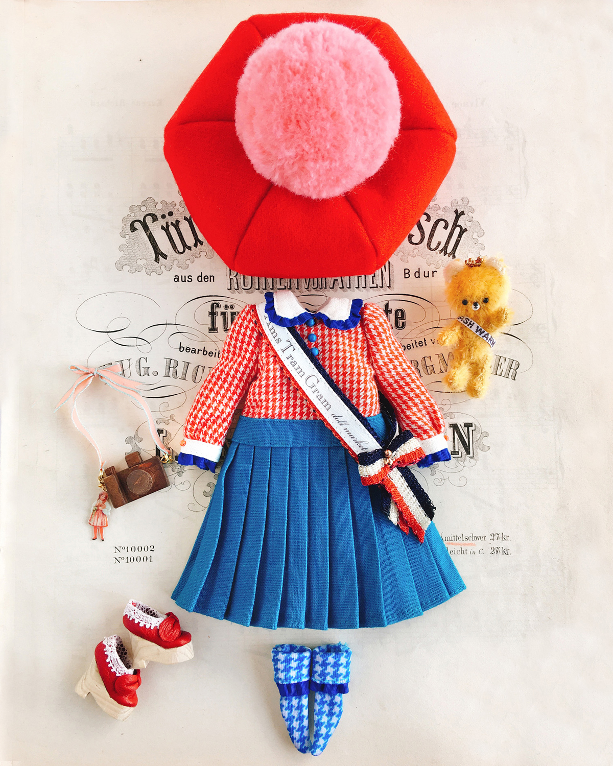 「あの太々しくて不思議な表情の女の子の絵は自分で描きました(笑)。わざとコピーを何度かかけて、影が出るようにしました。たしかに今もワンピースやミニチュア・ベアを製作しているので、好きなものは変わらないんだな、と思います」