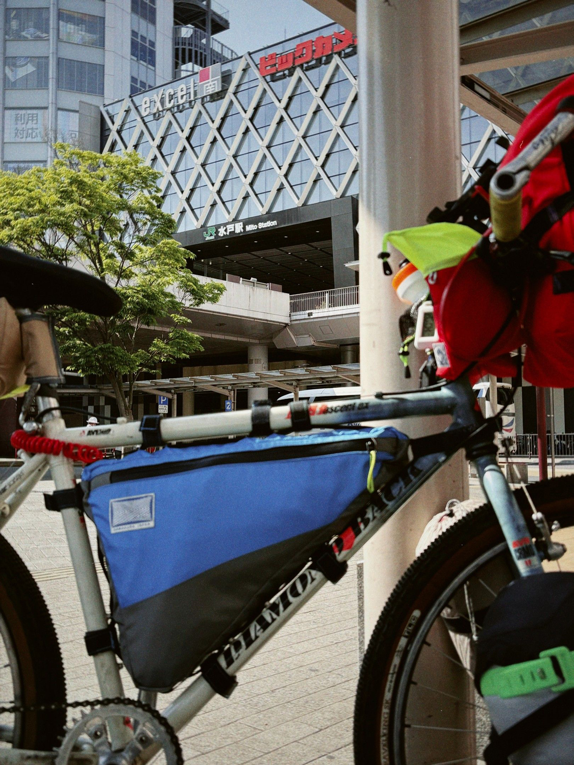 なぜ自転車で行くのかと聞かれると、伊勢へ行くときに鎌倉にアトリエ兼店舗を構えるK TEAMの阿部くん(阿部隆太)にわざわざオーダーメイドで作ってもらったバイクパッキング・セットを、これからたくさん乗ってどんどん広めていくよ!と言って早2年……。感謝の気持ちを、ボロボロになるまで使って伝えたい。そして歩くよりは辿り着くイメージがある(言葉の出なさに乾杯)。阿部くんには2年越しのフィードバックをして、少し改造してもらった。
