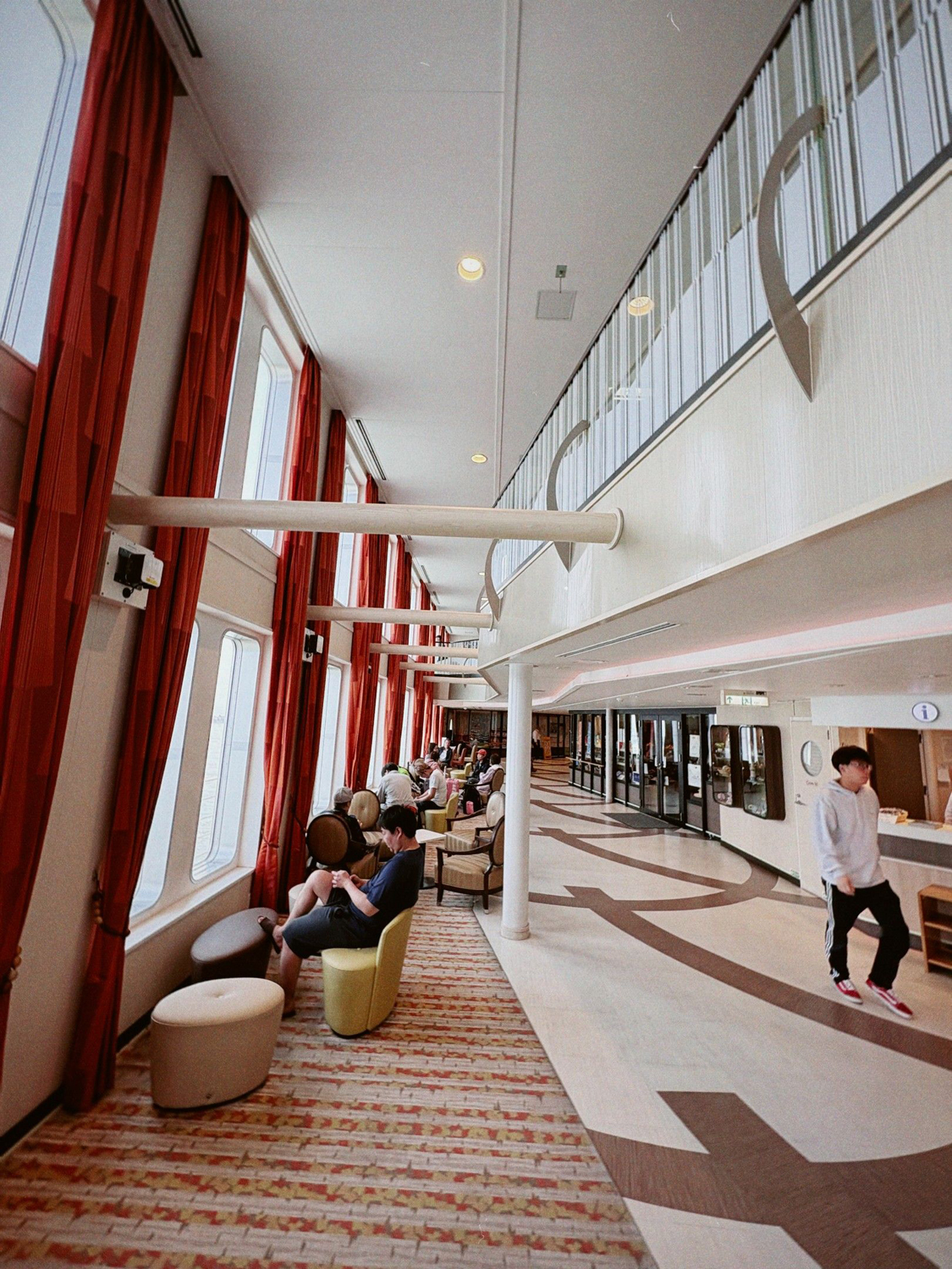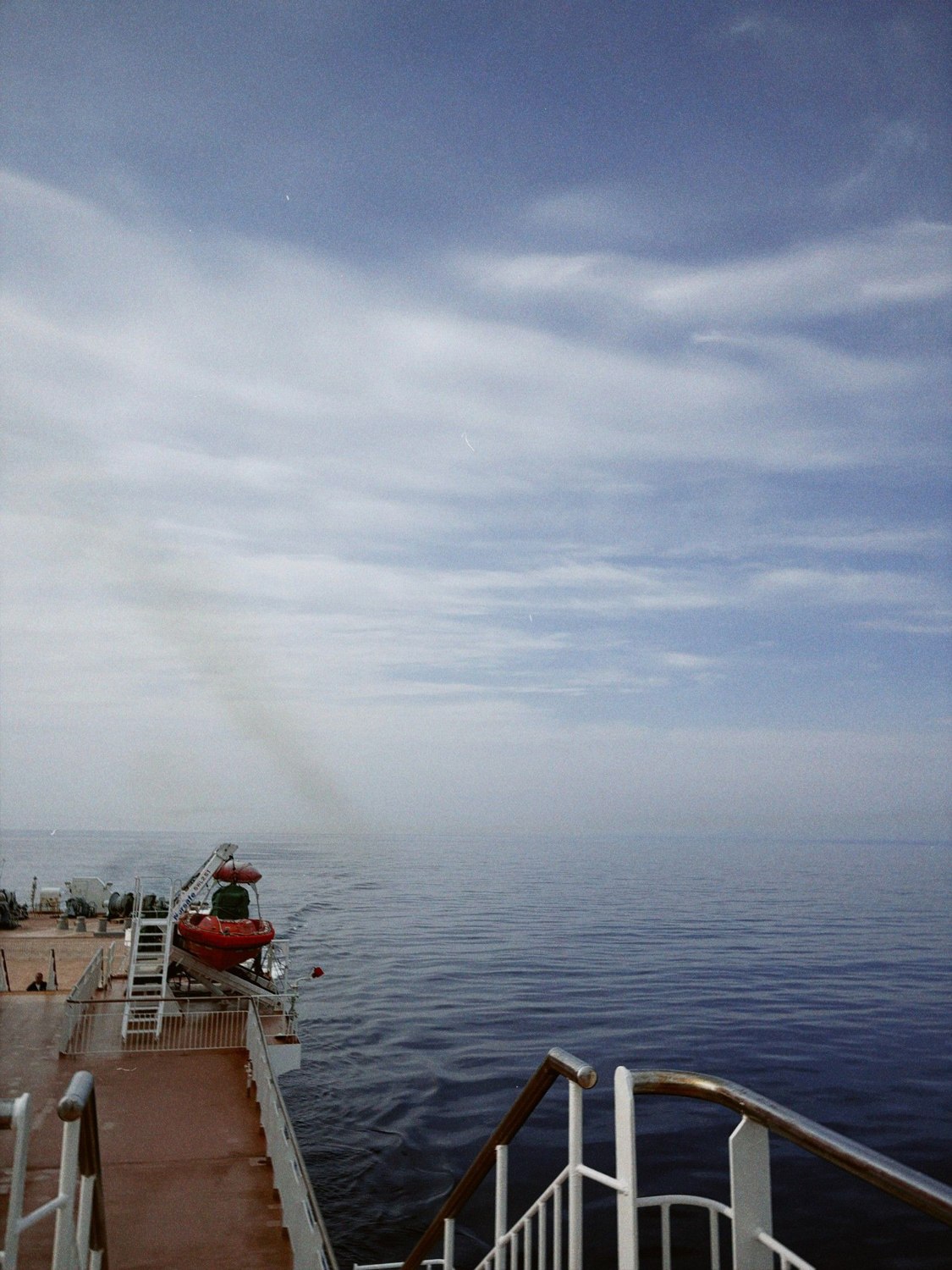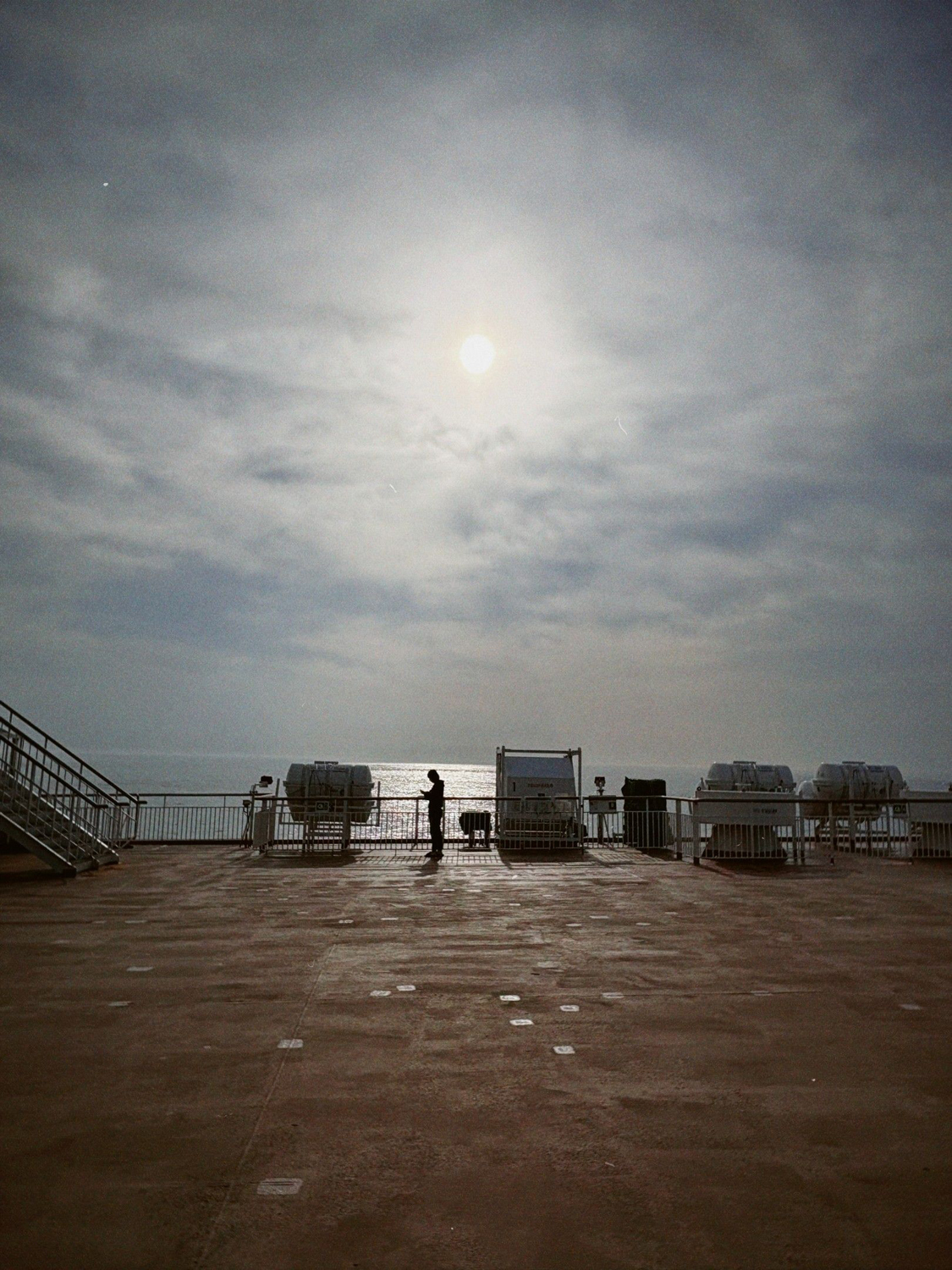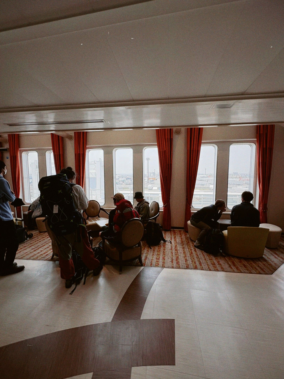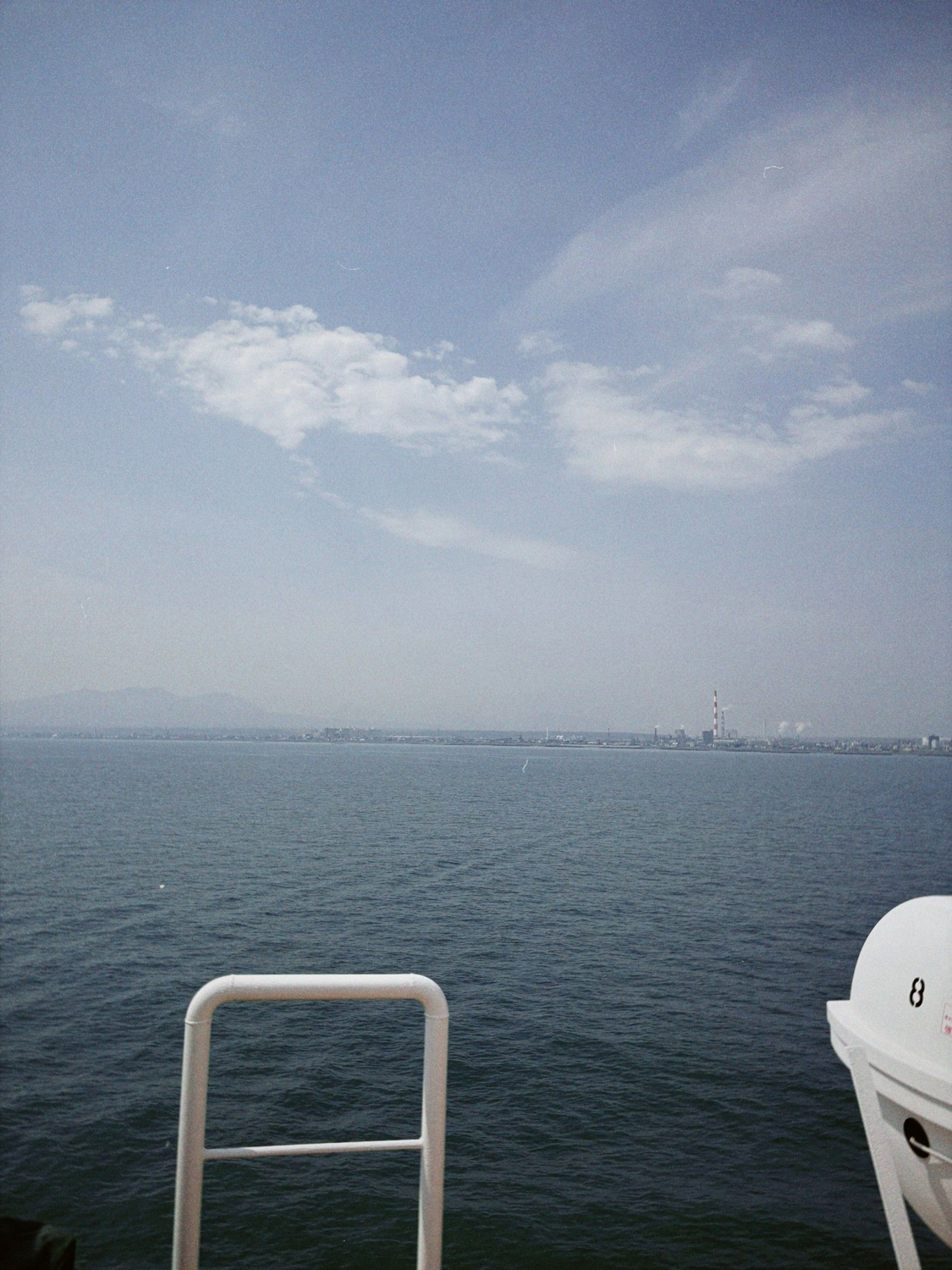 甲板で景色を見ていると到着のアナウンスが流れる。荷物をまとめ出発に備える。
