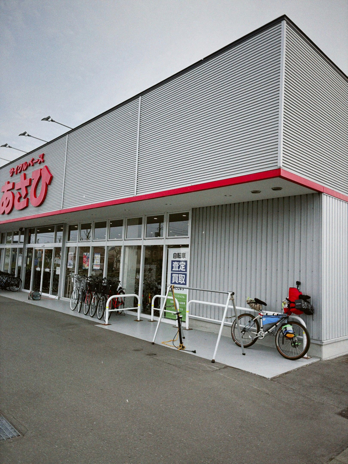 自転車の出発は一番最後だったのでなかなか出られない。フェリーの中は徐々にガラガラになっていく。港を出た時はもう人の気配はなかった。その間に自転車屋を見つけた。「サイクルベースあさひ」という全国チェーン。水戸で気になっていた自転車の不調。この先で何かあったら怖い。ここから20分のところにある自転車屋さんを目指す。