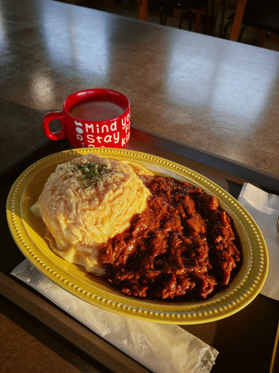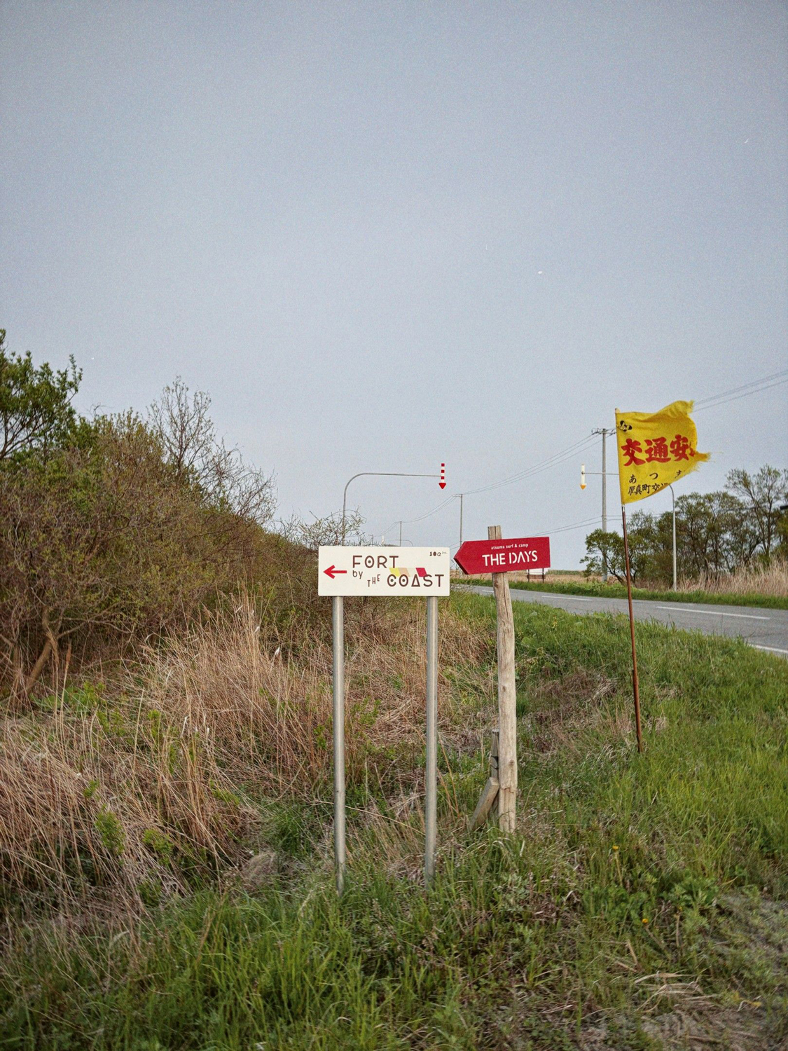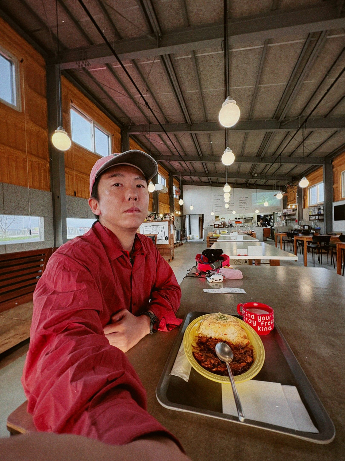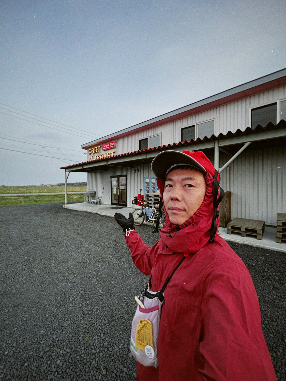 手書きの看板を見つけたので寄ってみることに。寄り道するには時間がない行程だったが、ひたすら続く荒野と向かい風で気分は落ち気味傾向だったので気分転換。行ってみるとFORT by THE COASTという大きな建物があった。そこは養鶏場が経営するカフェだった。まだ食事の気分じゃなかったが、食べられるタイミングで済ます方がいいかと思いオムライスを注文。店主の方とお話をした(自転車旅はすごく人恋しくなる)。旅をしていることを伝えると、「目的地の浦川へ向かう途中に兄の経営するバーバーがあるから寄ってみてよ。きっとお茶くらいは出してくれるよ!」と言われ、調べるとたしかにルート上だった。寄るか迷うが、今日のようにまた風が強かったら本当に寄るかもな。