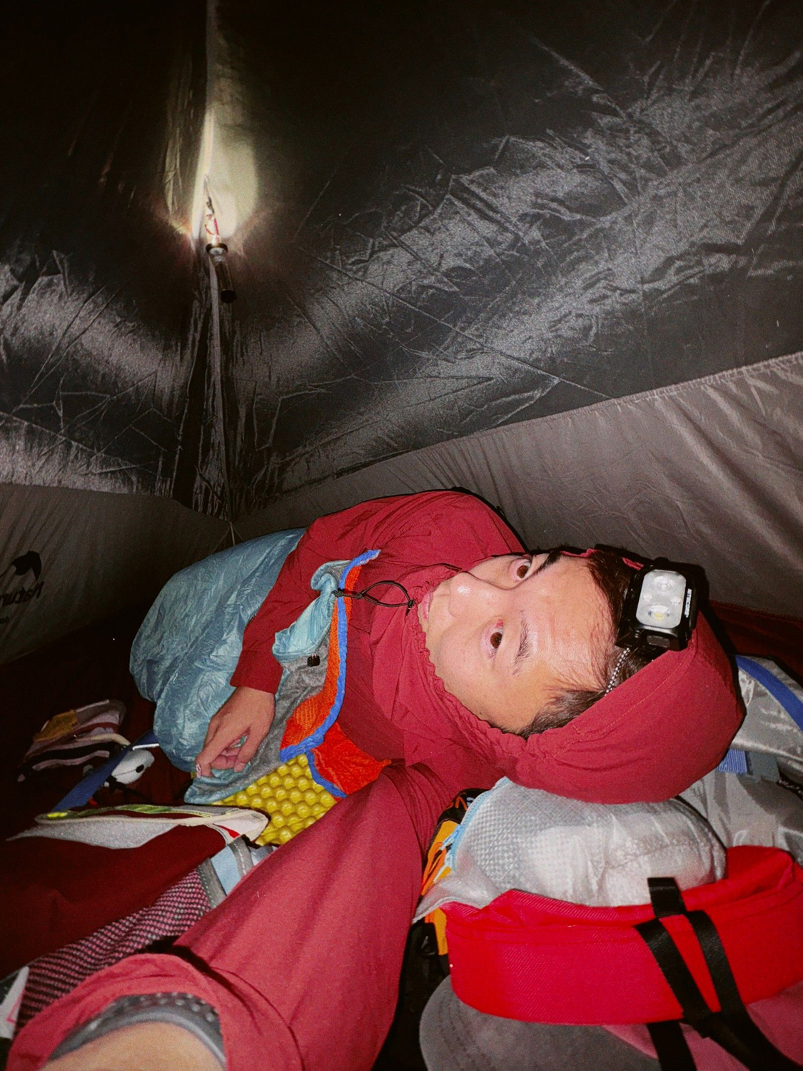 冷え込んできたなと時間を見るとこんな時間だった。気温は7℃。寒いしそろそろ寝よう。結露、獣対策でテント内にすべてしまい込み、就寝。夜中なのに知らない鳥の鳴き声が鳴りやまなかった。