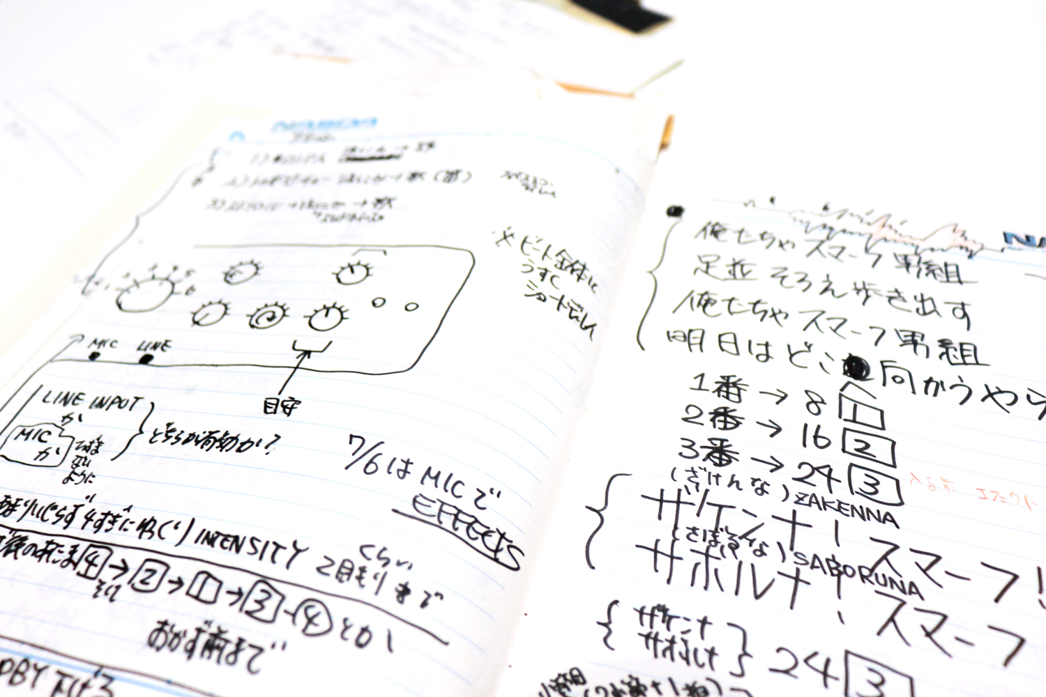 「もちろん、A.D.S.でAhh! Folly Jetこと高井(康生)さんと一緒にやらせてもらって、自宅でのDIY制作やスタジオワークも含め、高井さんから音響的なアイデアなど学ばせてもらったことはたくさんあります。そうしたことも制作に反映されていると思われますが、ただ、自分たちの実力ではできないこともたくさんありましたので、スマーフに関しては自分たちにできる範囲のことを試行錯誤でトライしつつ、最終的にはスタジオのエンジニアさんと相談して、自分たちの要望をお伝えしながら作業を進めていきました。だから、殊更に音響を意識したわけではないんですけど、当時の自分たちの理想とする好みの音響や音の鳴りに少しでも近づけるように試みました」