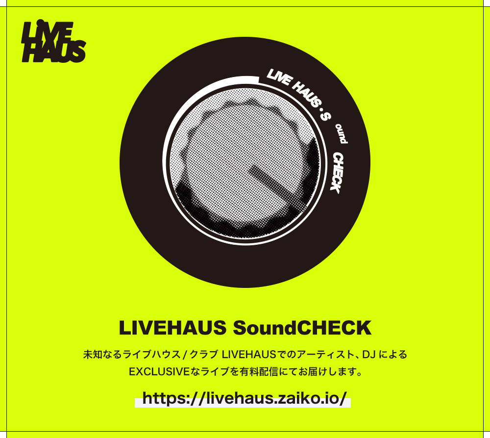 「LIVEHAUS SoundCHECK」は、4月9日に開店が予定されていたものの、SARS-CoV-2の感染拡大に伴って本オープンができない状況にある東京・下北沢のライヴ・ハウス / クラブ「LIVEHAUS」による配信企画。収益はアーティスト、撮影クルー、LIVEHAUSの3者に均等に分配され、配信日から3日間はアーカイヴが残ります。South Penguinは、本公演でサポート・ベーシストに初めて稲葉航大(Helsinki Lambda Club)を迎えるほか、荘子it(Dos Monos)も1曲でフィーチャー。