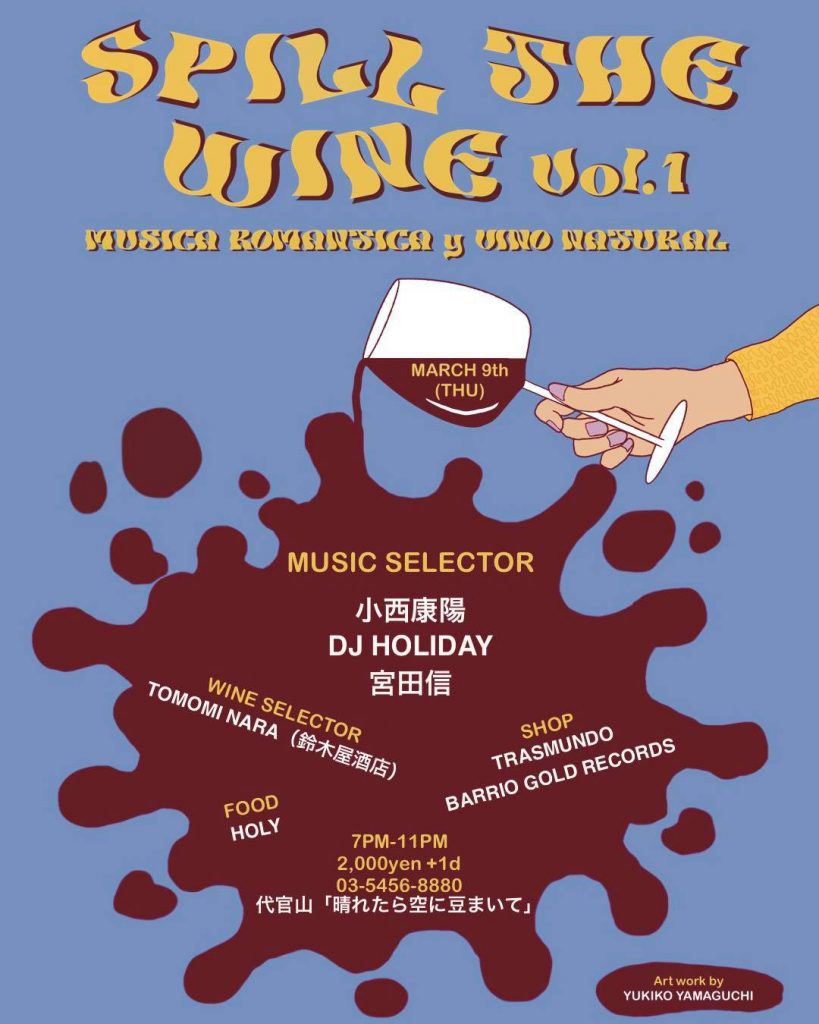 同公演では、“Musica Romantica Y Vino Natural”の副題通り、神奈川・鎌倉「鈴木屋酒店」「Barchie's」のスタッフとしても活躍するTomomi Naraがセレクトしたヴァン・ナチュールをサーブ。「HOLY」のフード出店や、東京・下高井戸のレコード・ショップ「TRASMUNDO」と宮田が主宰する「BARRIO GOLD RECORDS」による出店も予定されているほか、茨城・石岡「Forno a legna Panezza」のパンも味わえるとのこと。フライヤー・アートはYukiko Yamaguchiが担当しています。