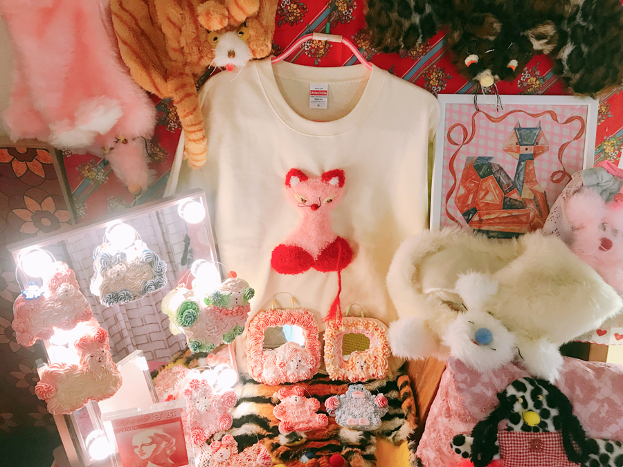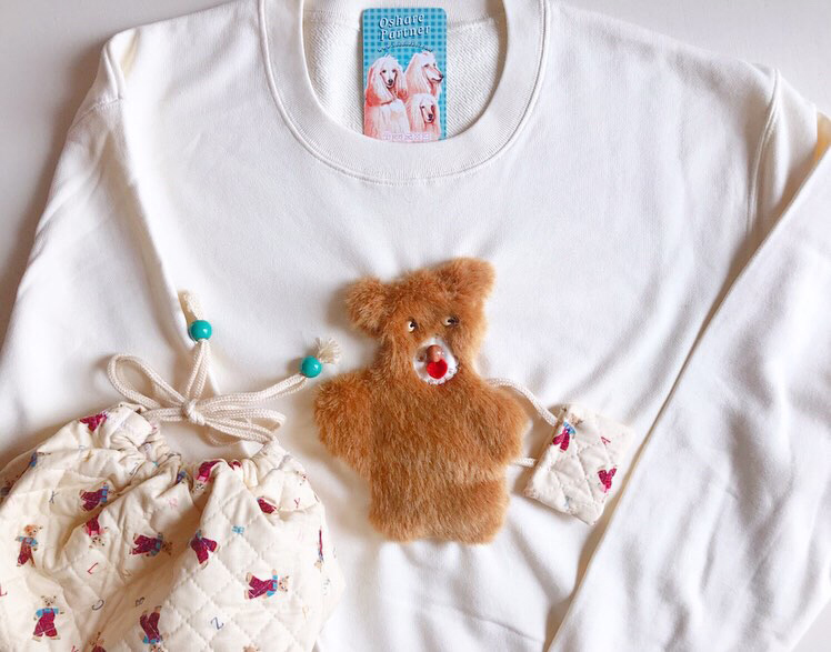 昔懐かしいキルティング生地などを用いた「へたくそバック」をはじめ、ホイップクリームで犬を模したような「クリームミラー」「クリームマグネット」、色鮮やかな「リソグラフポスター」といった「yarn yarn」時の販売アイテムが再登場するほか、「ビンテージのぬいぐるみ付きシェードランプ」「どうぶつラグ」などの雑貨、パンチニードルを施したスウェットや動物をあしらったコートとティペットなどのアパレル・グッズも販売。加えて、アクセサリー・ブランド「ぽーとらら」を主宰する手芸作家“ナポリタンみみこ”によるニット・ブランド「ぽーとるる」の商品初販売も決定しています。