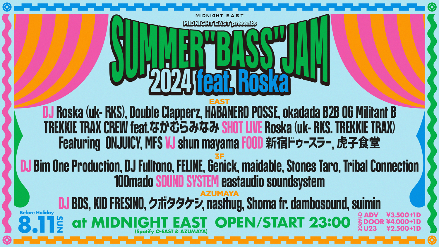 東京・渋谷 MIDNIGHT EAST(Spotify O-EAST + 東間屋)が、プロデューサー / リミキサー / DJ・Roska aka Wayne Goodlittを迎え、今年初の開催となるイベント「SUMMER "BASS" JAM 2024」を8月11日(日)に同地のO-EAST、O-EAST 3F、東間屋の3フロアで開催。タイムテーブルが公開されています。
