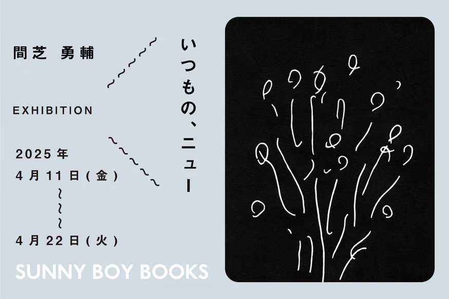 2013年にオープンし、2022年には沖縄・浜比嘉島に姉妹店「本と商い ある日、」を開店した東京・学芸大学の書店「SUNNY BOY BOOKS」が、入居物件解体のため4月下旬に閉店。4月11日(金)から22日(火)にかけて最後の店内エキシビションとして、同店のトレード・マーク“サニーくん”を描いた間芝勇輔の個展「いつもの、ニュー」が開催されます。同展は、3月に「本と商い ある日、」にて開催した展示の巡回展。新作Tシャツ、バッグなどのアイテムも販売されます。