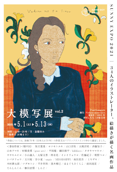 東京・学芸大学の書店「SUNNY BOY BOOKS」が、34名の作家が参加する企画展「SUNNY EXPO 2021 大模写展 vol.2」を5月1日(土)から5月13日(木)まで店内で開催。