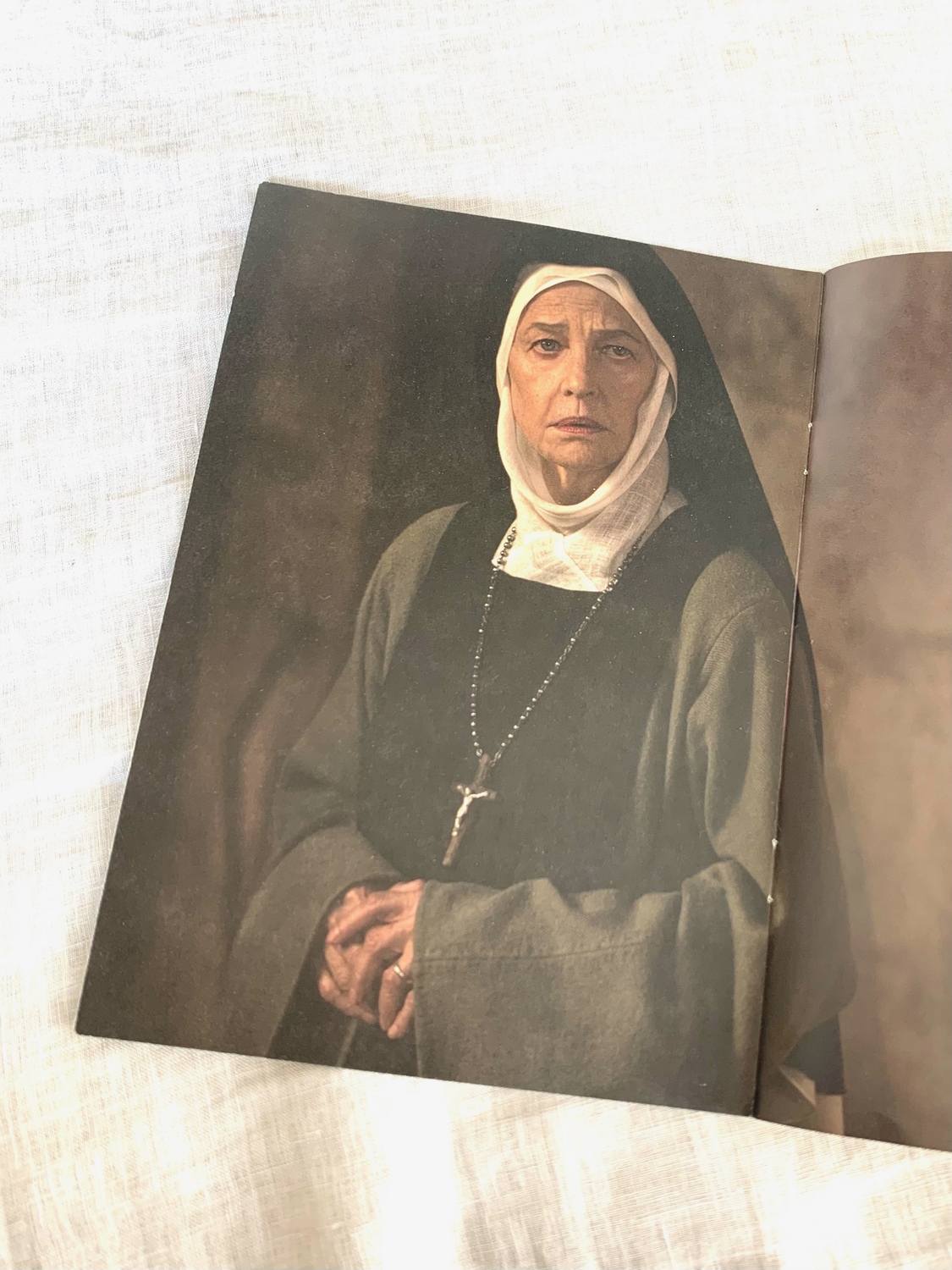パンフレットによると、ヴァーホーベンは「ジーザス・セミナー」なる団体の会員で、イエスの行動や言動の信憑性を追求する活動をしていて『Jesus of Nazareth: A Realistic Portrait』(2008)という本も出版しています。その見解が本作『ベネデッタ』にも繋がっているようです。キリスト教とりわけカトリックの影響が強いヨーロッパの環境下できっといろいろ疑問に思ったのでしょうね……。ベネデッタの聖痕は捏造か否か?という論点について、明確な描写こそないけれど、ガラスの破片が見つかって、なんか怪しい……っていうくらい。まあそういうことです。