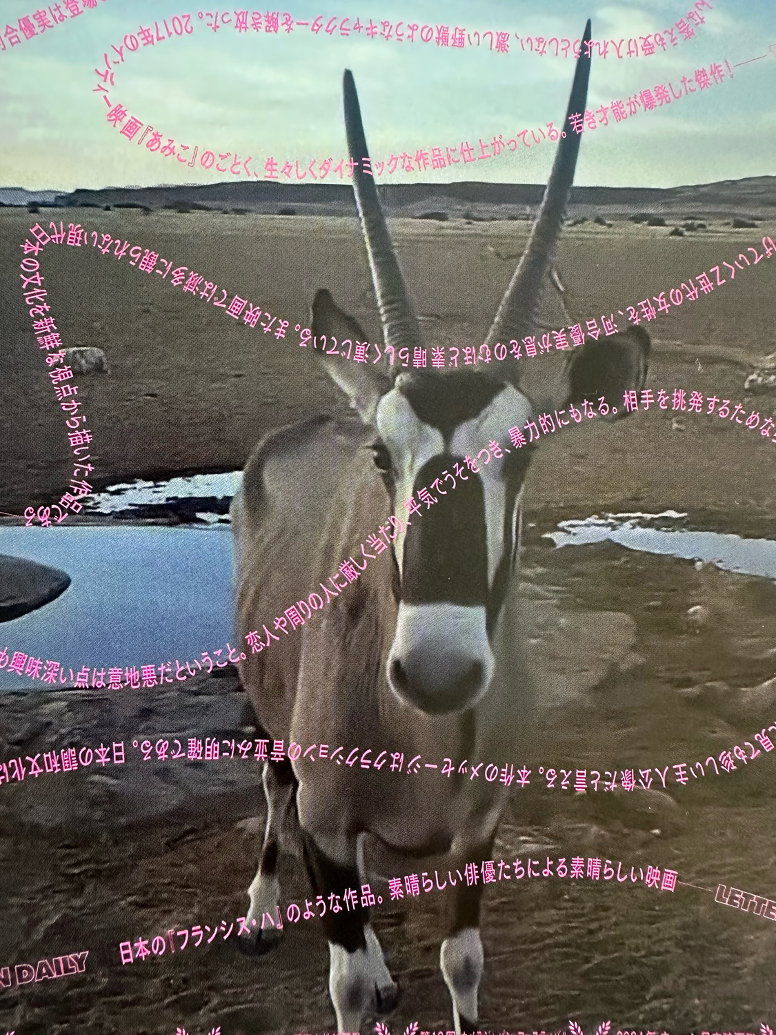 そして、象徴的に挿入されるのがカナが携帯で観ているナミビアの砂漠の動画。オアシスで謎の動物(インパラかオカピみたいなやつ)が水を飲むこの映像はエンドクレジットでも流れます。これが何かを意味するなら、不毛の地で心穏やかに生きる理想の姿?桃源郷??