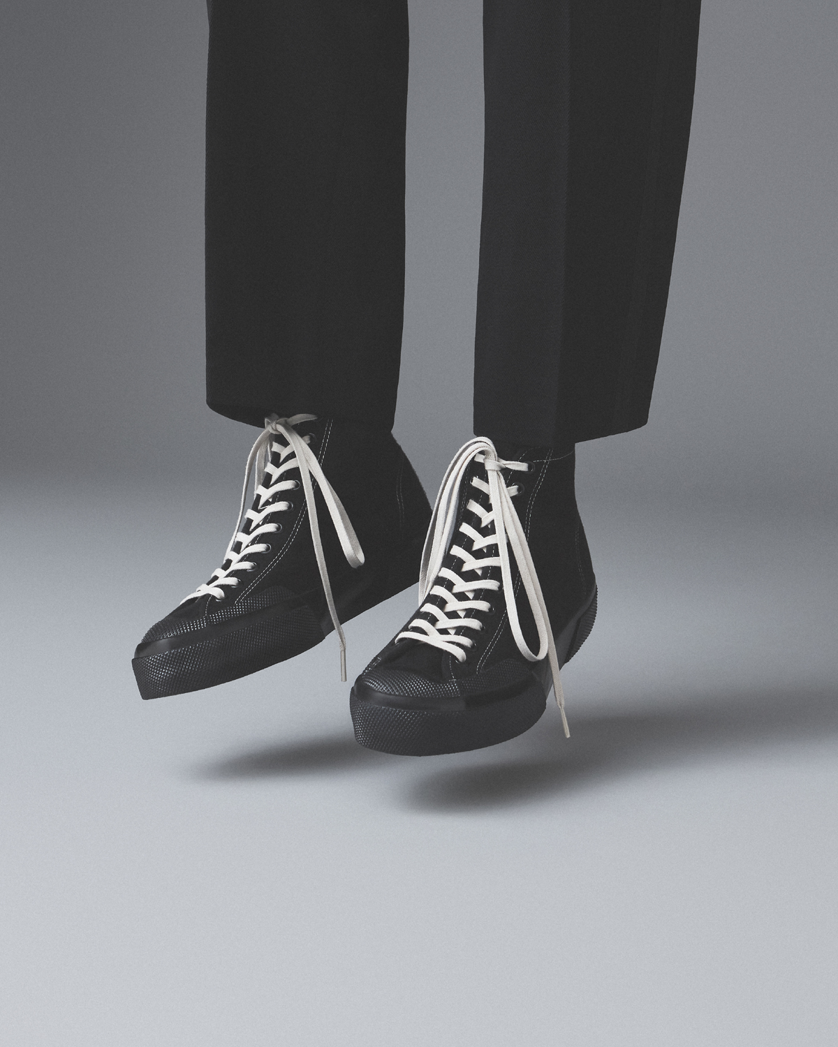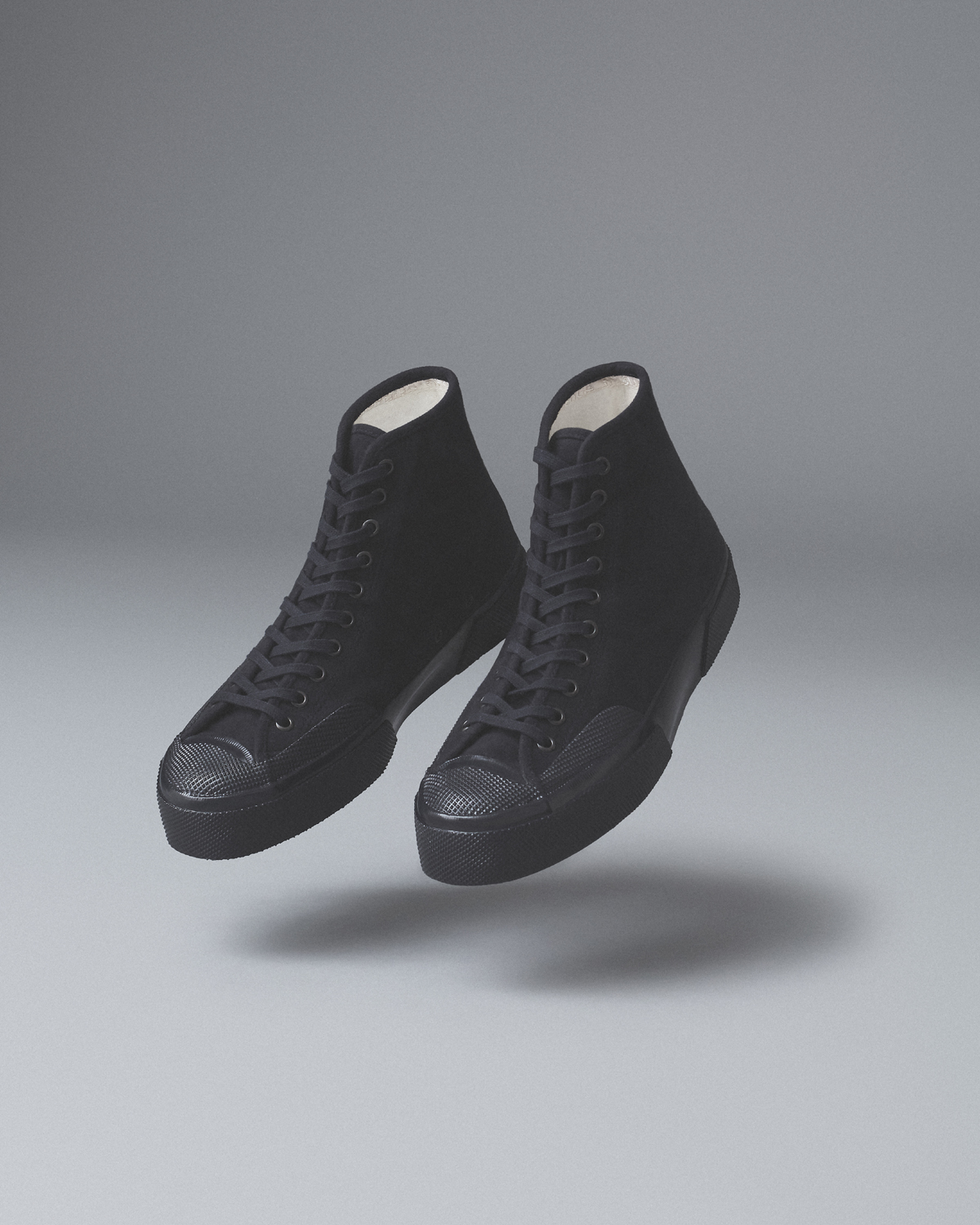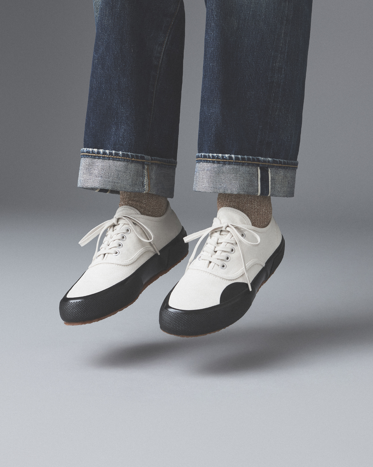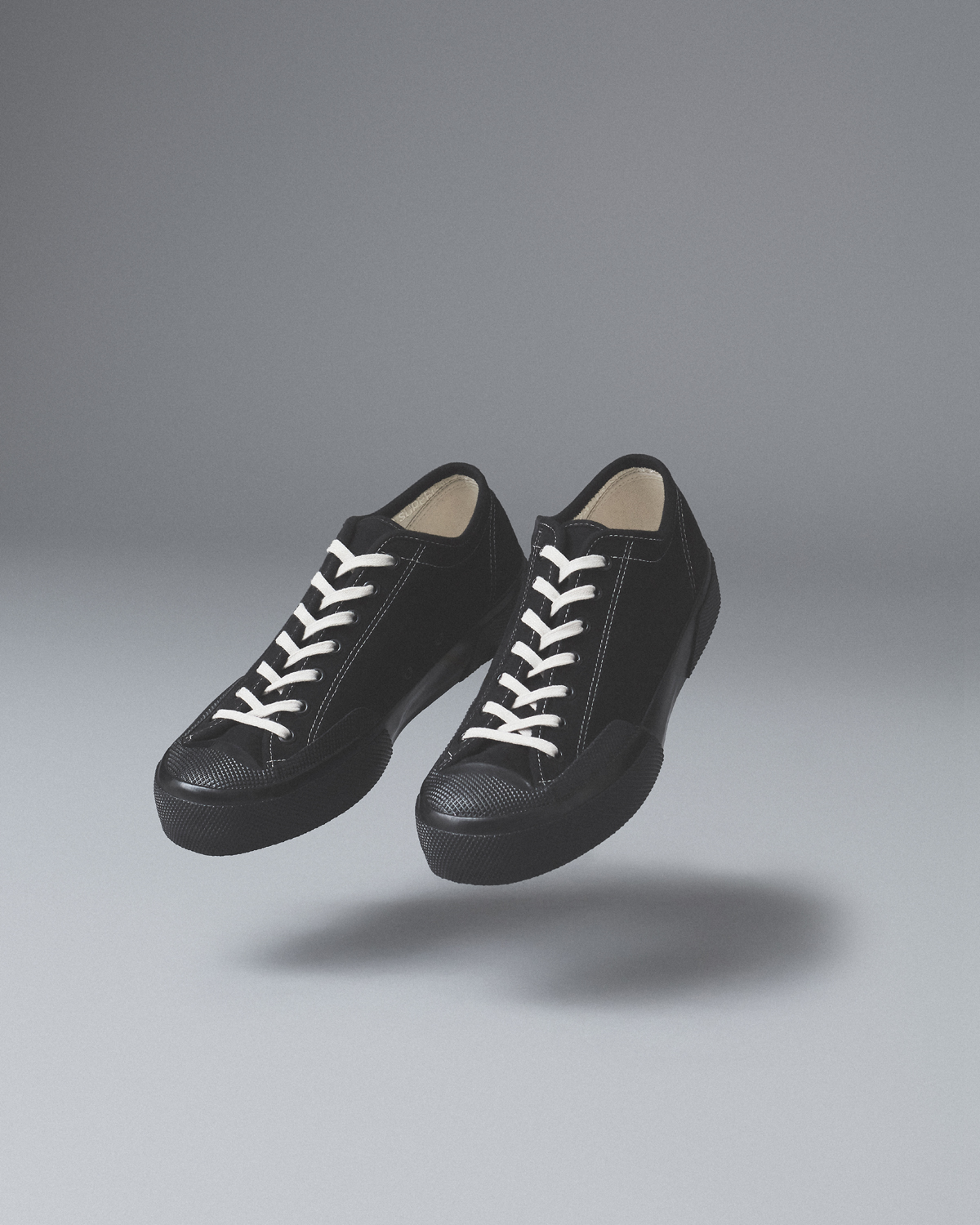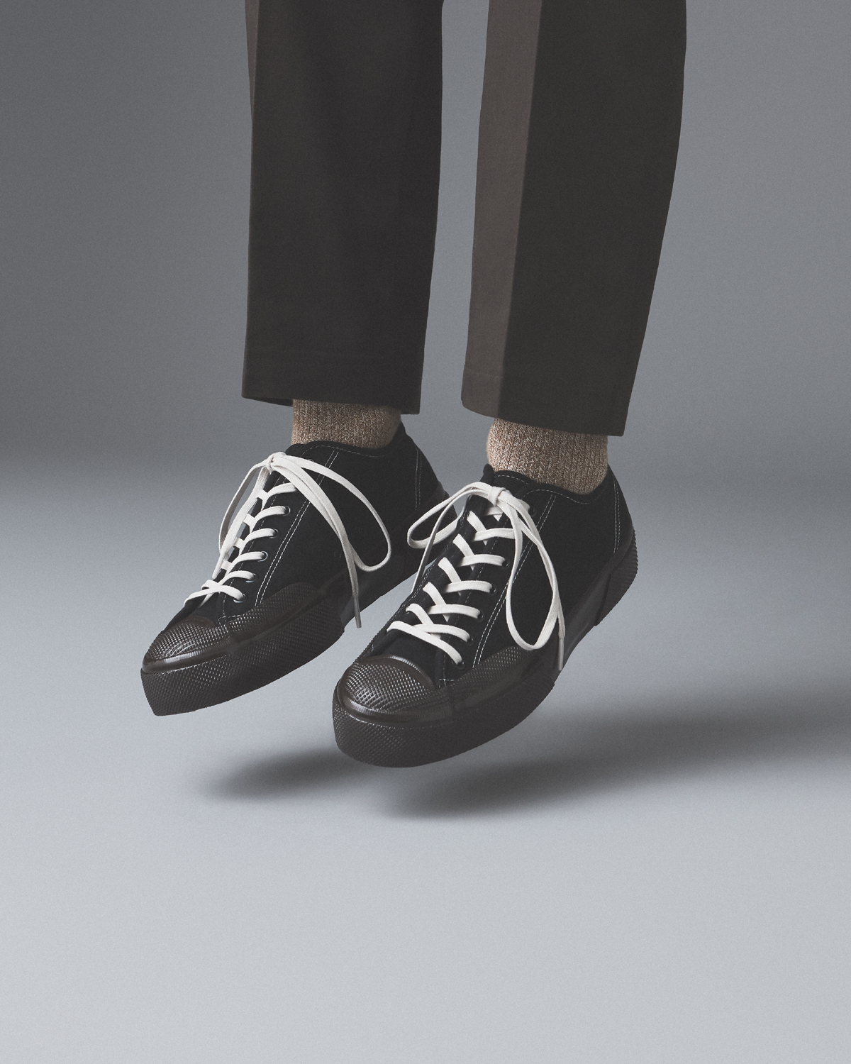 SUPERGAのメンズでは初のプレミアム・ラインとして昨年菅谷が立ち上げた同コレクションは、ミリタリー・スペックからインスパイアされた“Mil Spec”、クラシックなワーカー・スタイルの“Works”、ラバーソールとSUPERGAを象徴するキャンバスのアッパーを使用したデッキシューズ“Deck”の3カテゴリーに分類。堅牢な日本製デニムのアッパーに、SUPERGAのアーカイヴから再発見されたカレンダーソールを組み合わせたヘヴィデューティな“Mil Spec”は、ローカット3種、ミドルカット3種の計6種。モールスキンのアッパー、1970年代のアーカイヴからカップソールを採用した“Works”はローカット5種、ミドルカット5種の計10種。いずれもローカットの“Deck”は、5アイレット3種、7アイレット3種の計6種がラインナップ。