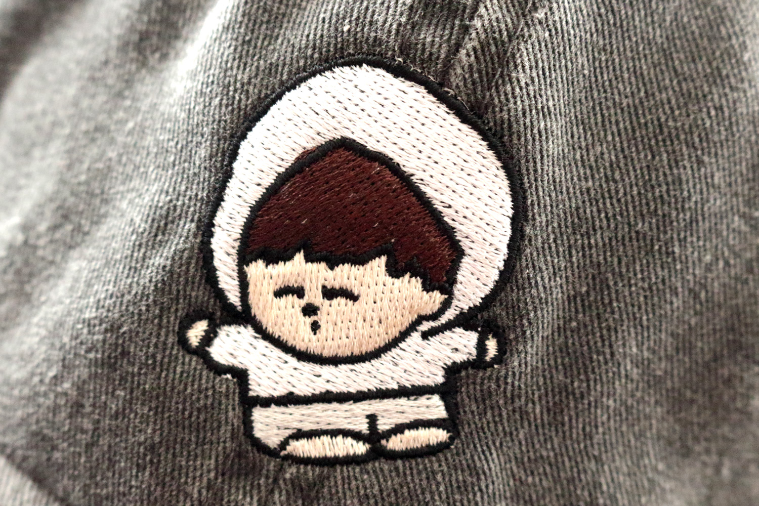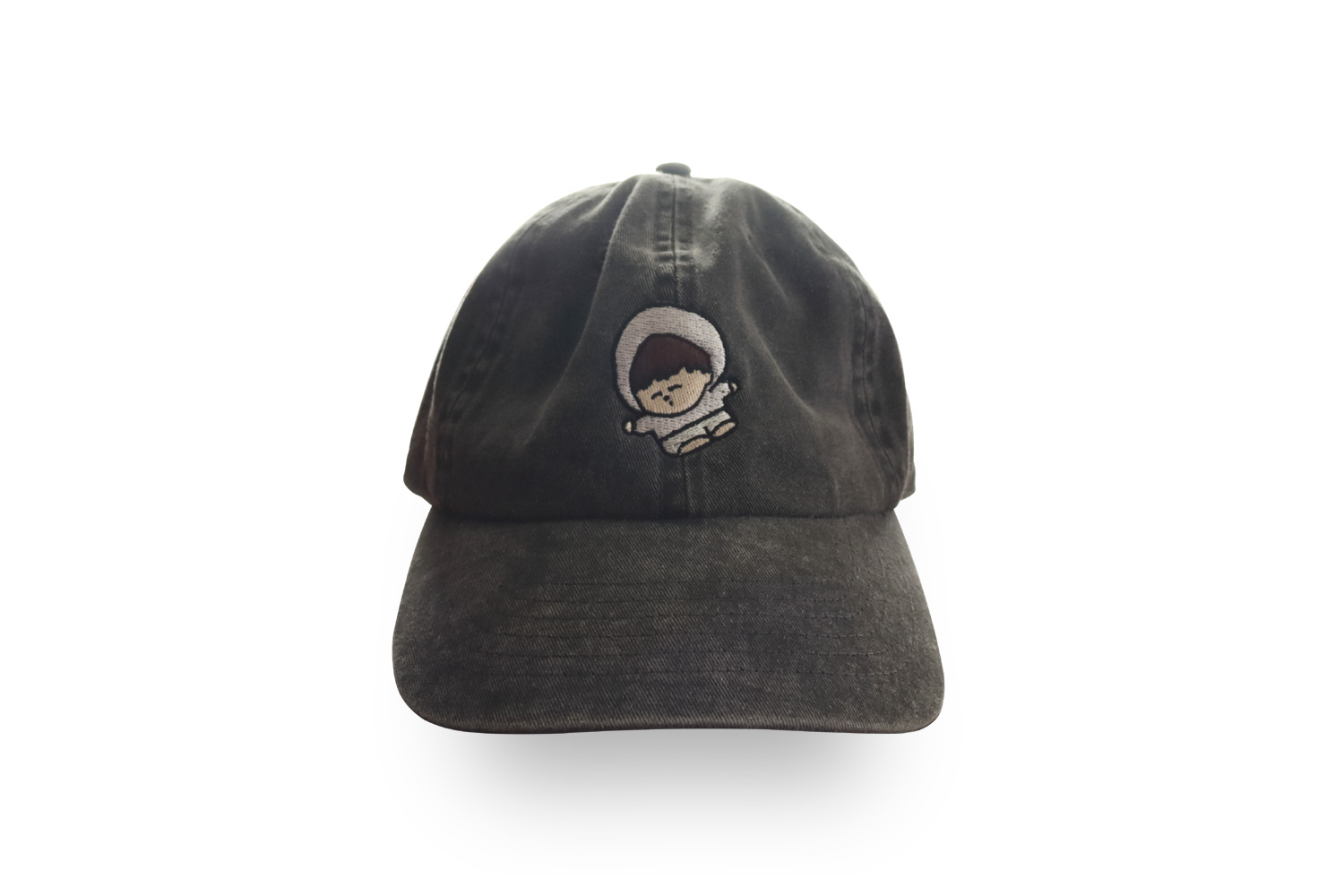 片岡メリヤスが描いた横沢俊一郎のキャラクター“横沢くん”がすやすやと眠るイラストを刺繍したキャップです。