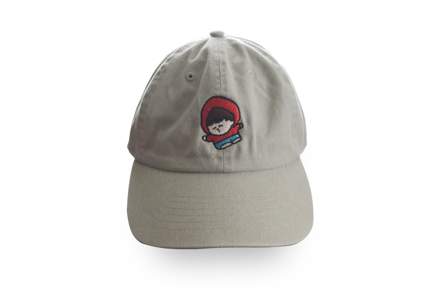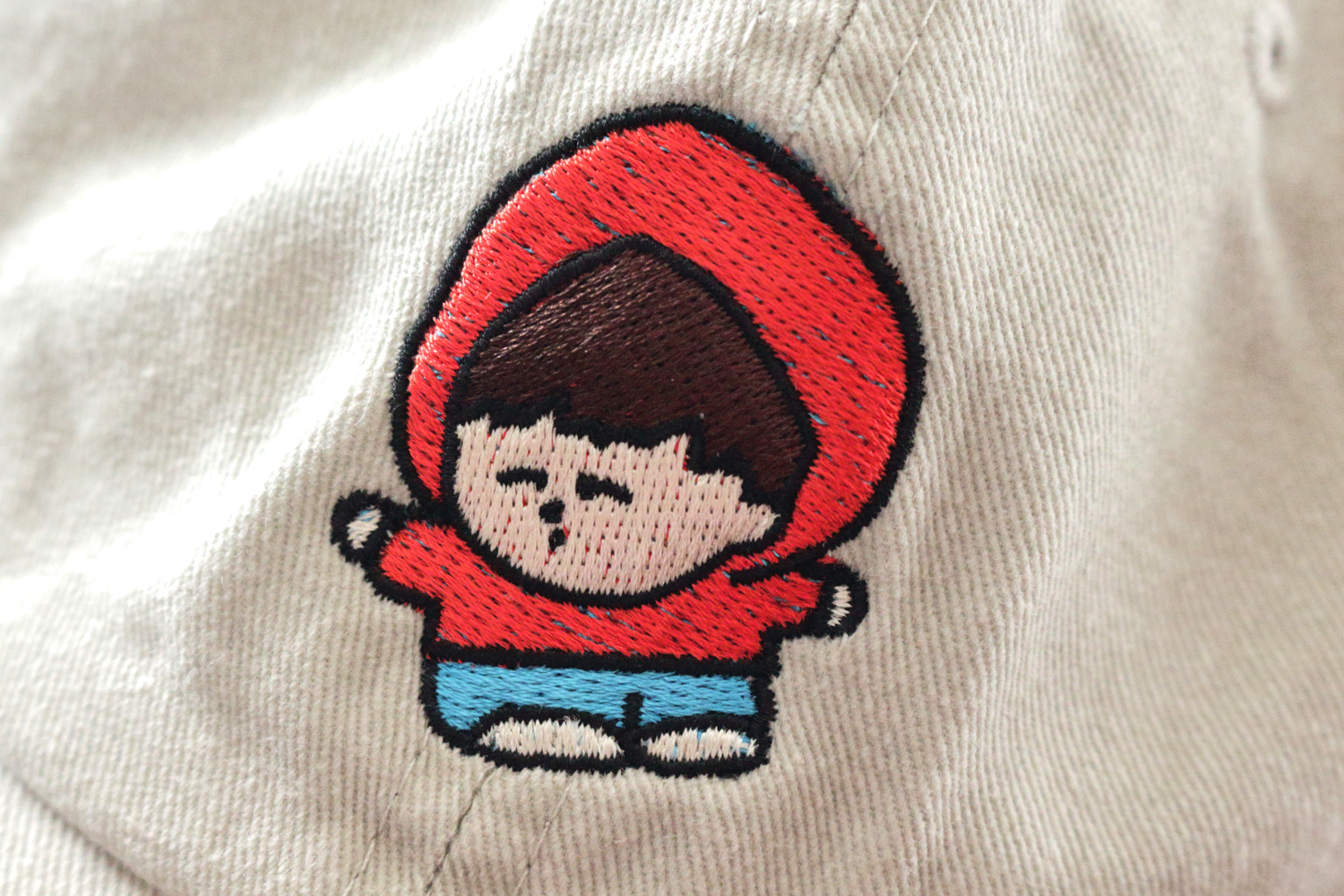 片岡メリヤスが描いた横沢俊一郎のキャラクター“横沢くん”がすやすやと眠るイラストを刺繍したキャップです。